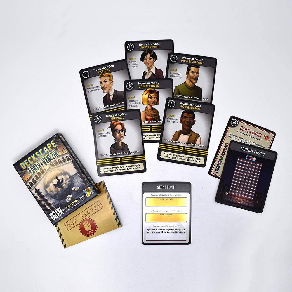In Deckscape: Heist in Venice you are professional thieves, now retired, but a mysterious missive forces you to reunite the old gang. The mission: sneak into the oldest casino in the world, in Venice, and steal a 1 billion euro chip! Each of you has specific skills and abilities, and if you stick to the plan everything will be fine. Although, yours is a risky job, and an unexpected event could compromise the whole mission... Can you overcome the intricate security systems of the casino and then run away with the loot?