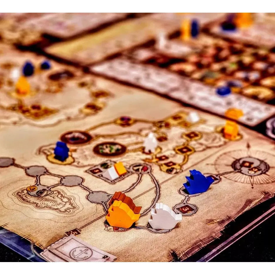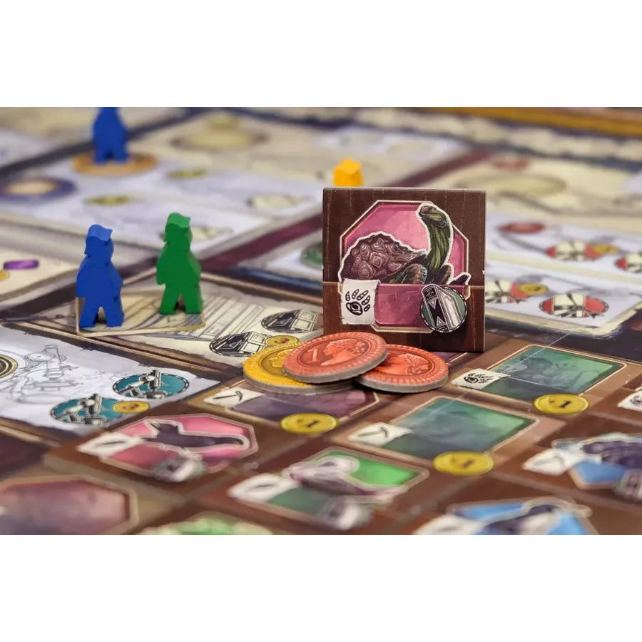 With the game's innovative worker progression system, each worker will have to study the disciplines that are a prerequisite to perform several actions in the game, such as exploration, correspondence, gathering, and dispatch of repertoires found on the island to museums in order to contribute to the human knowledge of biology. The game lasts five rounds, and thanks to several short- and long-term objectives, every action you take will grant victory points in different ways.