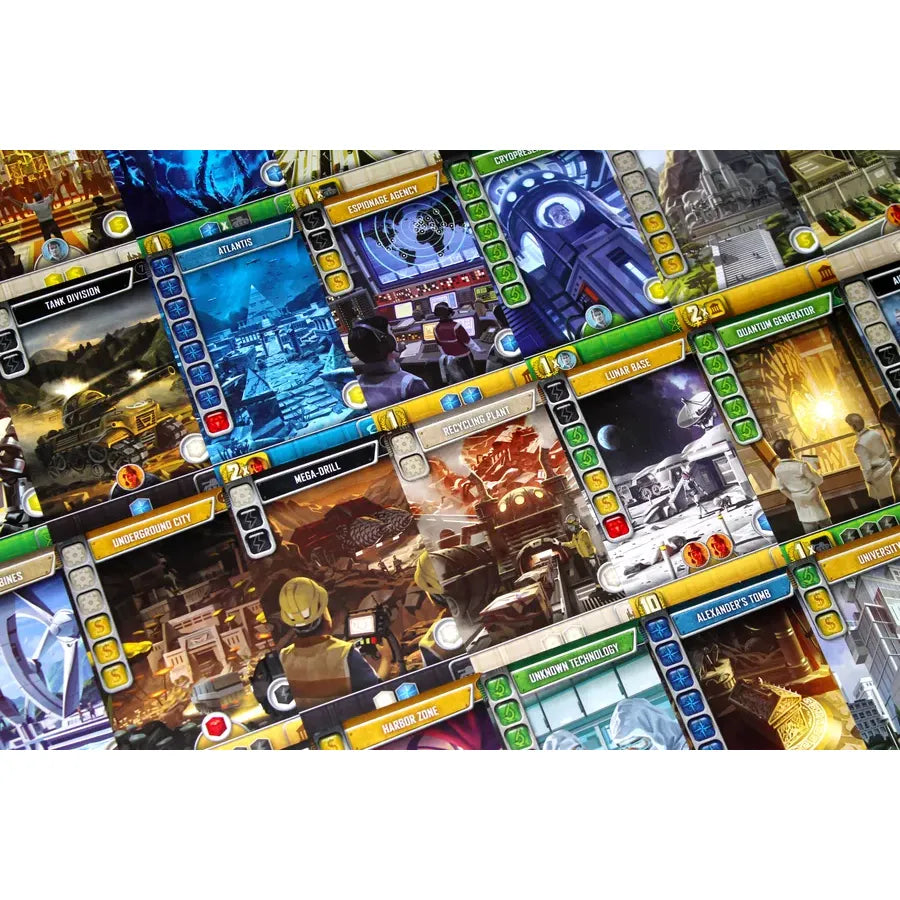 It’s a Wonderful World is a cards drafting and engine building game for 1 to 5 players. Each round, players will draft 7 cards and then choose which ones will be recycled to immediately acquire Resources, and which ones will be kept for construction to produce Resources each round and/or gain victory points.