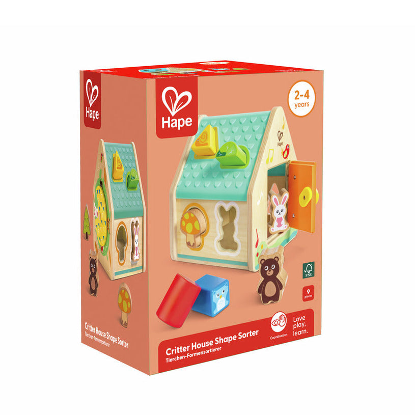 Welcome to this enchanting Critter House Shape Sorter, where a delightful adventure of shapes and creativity unfolds. Explore the captivating world of this shape-sorting house as you match adorable animal and character blocks to their corresponding openings. Embark on a magical journey of shapes and imagination!