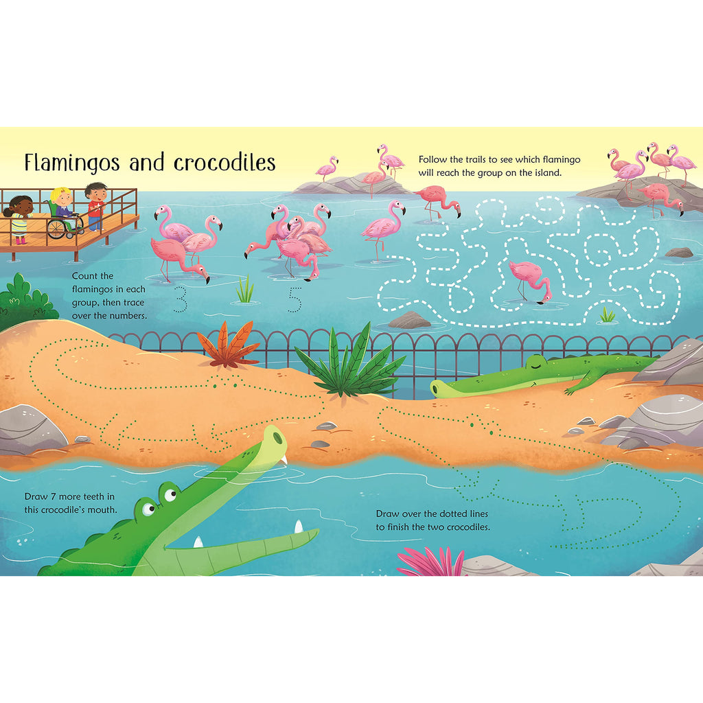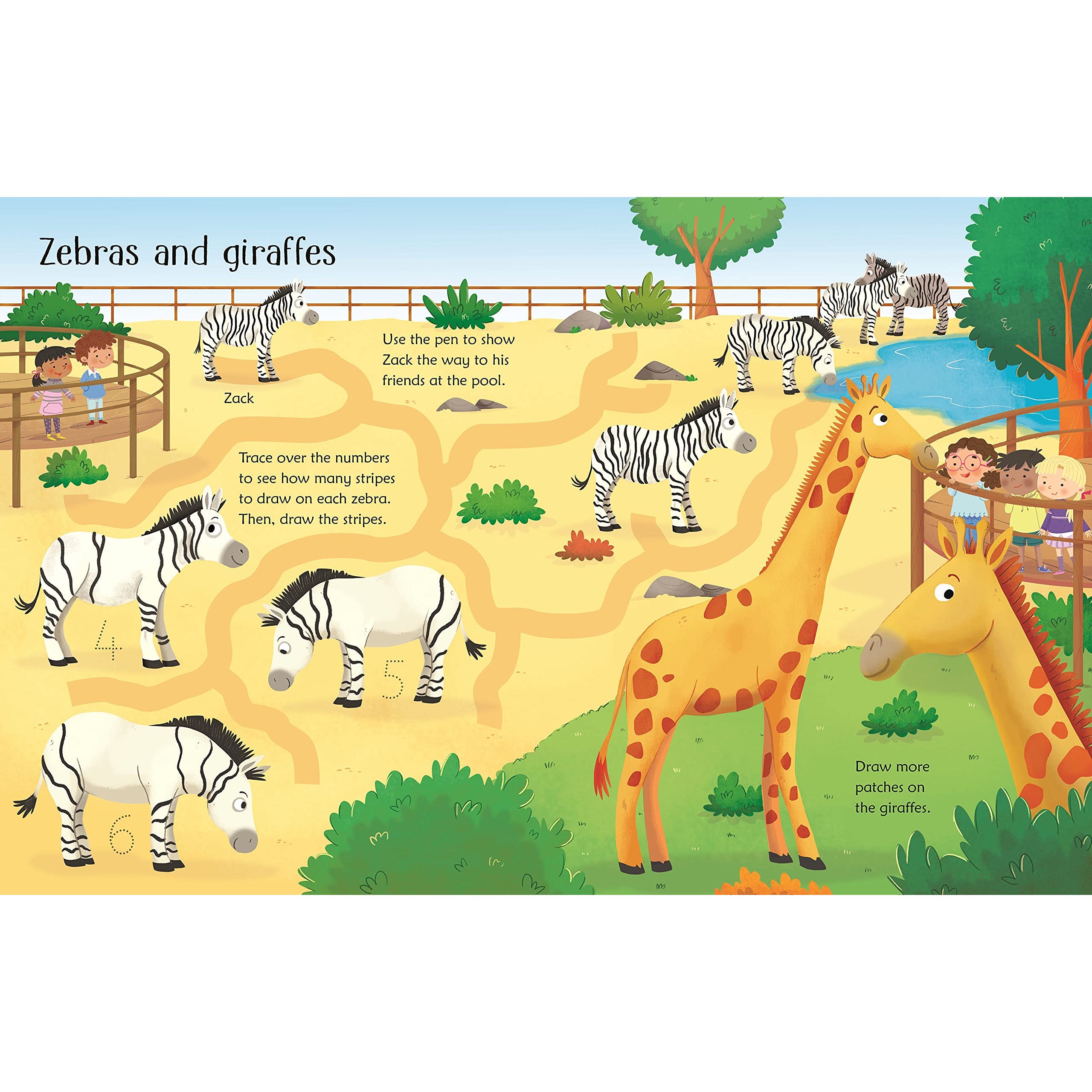 Young children will enjoy joining the dots, spotting differences, solving mazes and tracing the dotted lines in this delightful zoo animal-themed book. Using the special pen provided to complete the fun activities, children will gain plenty of practice in pen-control - an essential skill they must learn before starting to form letters and numbers. Then can then wipe the shiny pages clean and do them again. Part of the hugely successful Usborne Wipe-clean series, offering little children fun ways in which to practise their pen control as they get ready for writing.