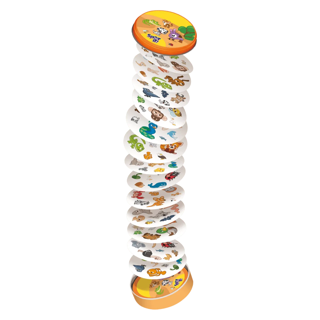 Like the other Spot It! games, Animals Jr. will come with a variety of unique animal- only symbols for you to identify and match from card to card. All of the symbols in Spot It! Animals Jr. are easily identify able by all ages. Perfect to help teach and reinforce animal names and shapes, Spot It! Animals Jr. makes learning fun! With quick, engaging gameplay and multiple variants to play, Spot It! Animals Jr. makes for quick fun for the whole family that can be played anywhere.