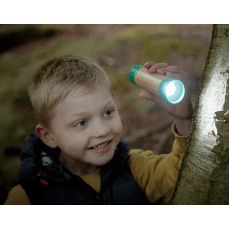 Forget batteries forever! This hand-powered flashlight is perfect for the eco-friendly explorer. Made from bamboo and plant-based plastic (non-oil-based).