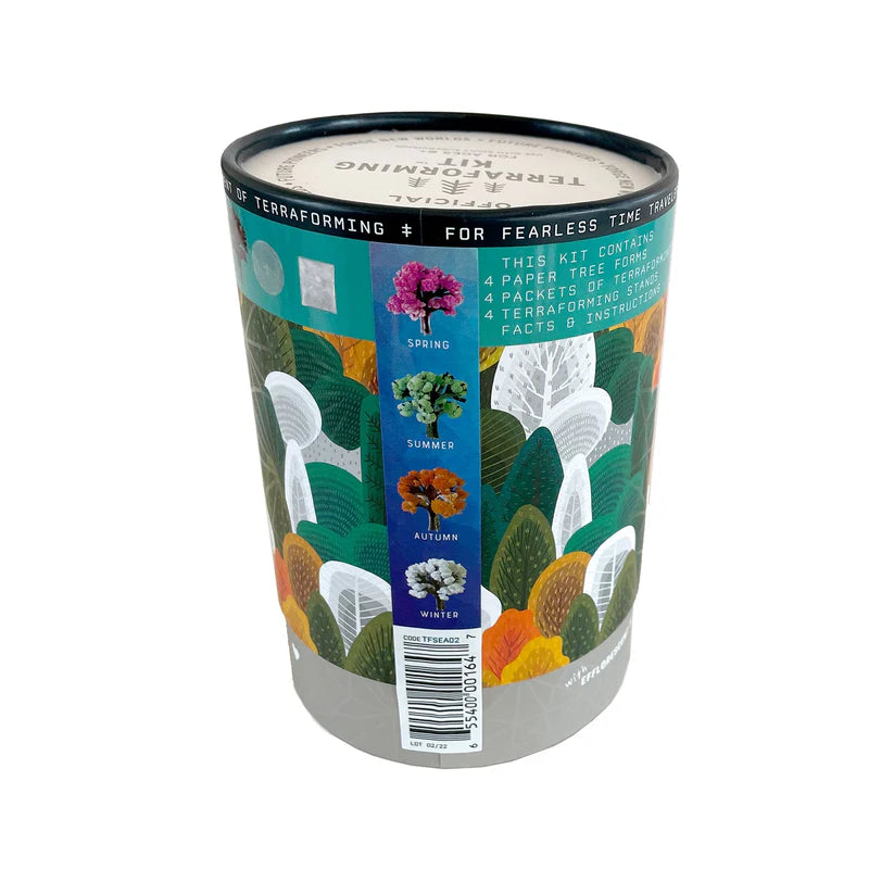 Now you can grow a tree representing each of the 4 seasons. This kit includes 4 tree forms, trays, terraforming growing powder, illustrated instructions, and a booklet of season-changing facts. Experience all the seasons today!