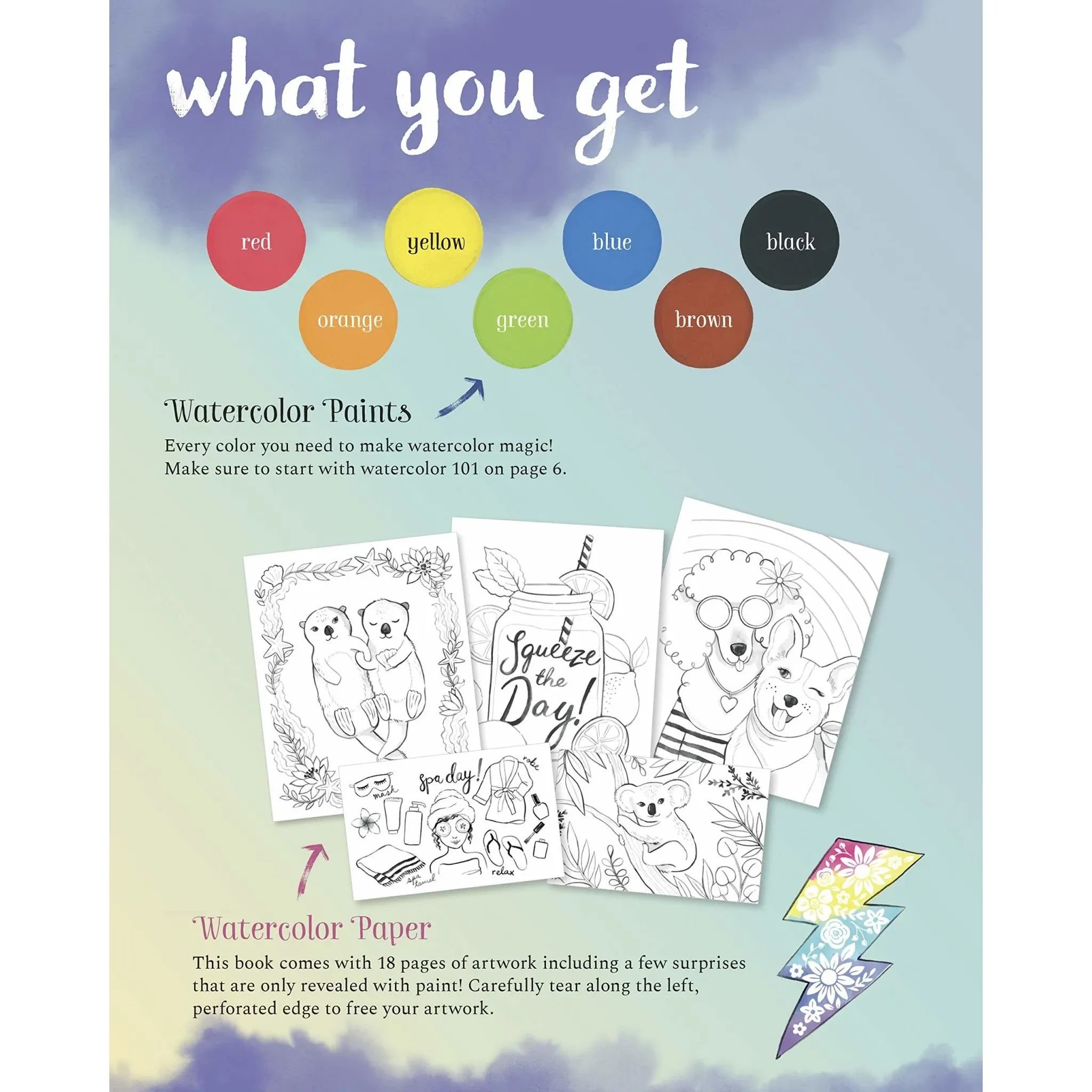 As you paint, reveal hidden designs in our invisible, paint-resistant "ink." Uncover patterns in scenes with adorable animals, a star-studded galaxy, whimsical fairies, and more! Follow step-by-step instructions to learn the basics of watercolor and work up to more intermediate techniques like ombre and tie-dye with 20 pieces of adorable, ready-to-paint artworks. With premium paints and magical designs, this is the perfect starter kit for budding artists.