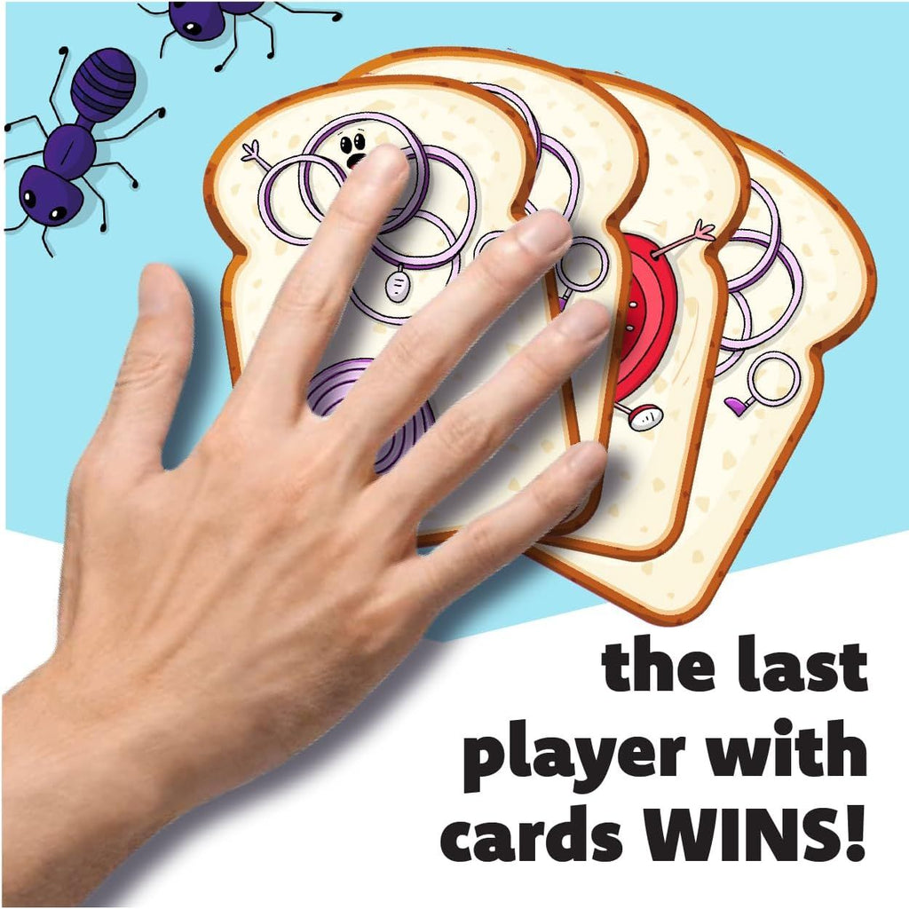 Flip and stack this smart bread to create slamwiches and deckers. Tomato, onion, tomato ... a slap! Go ahead first and win the pile. But beware, you will have to catch the thief and prevent the Muncher from stealing the pile of cards. When you run out of cards, you are offside. The player who gets all the cards wins.