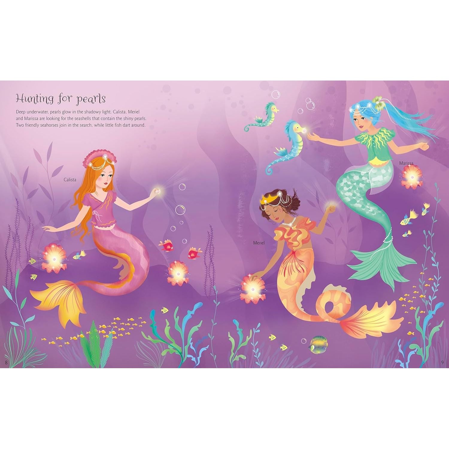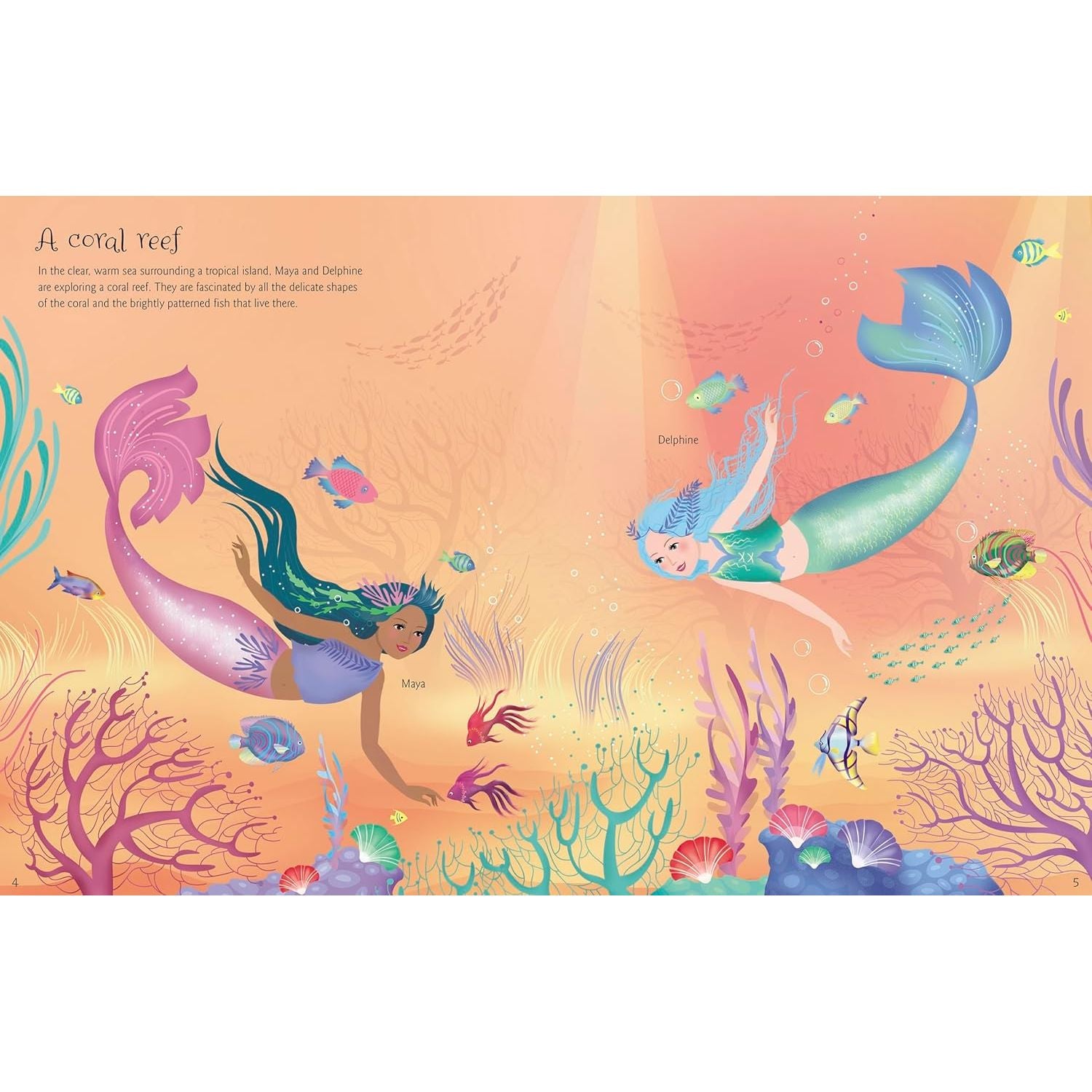 Dive into an undersea world where mermaids gather pearls, meet a mermaid queen, find a treasure chest and dive with seals. With hundreds of stickers to dress the mermaids and add sea creatures and treasure to the scenes, including some extra special sparkly stickers.