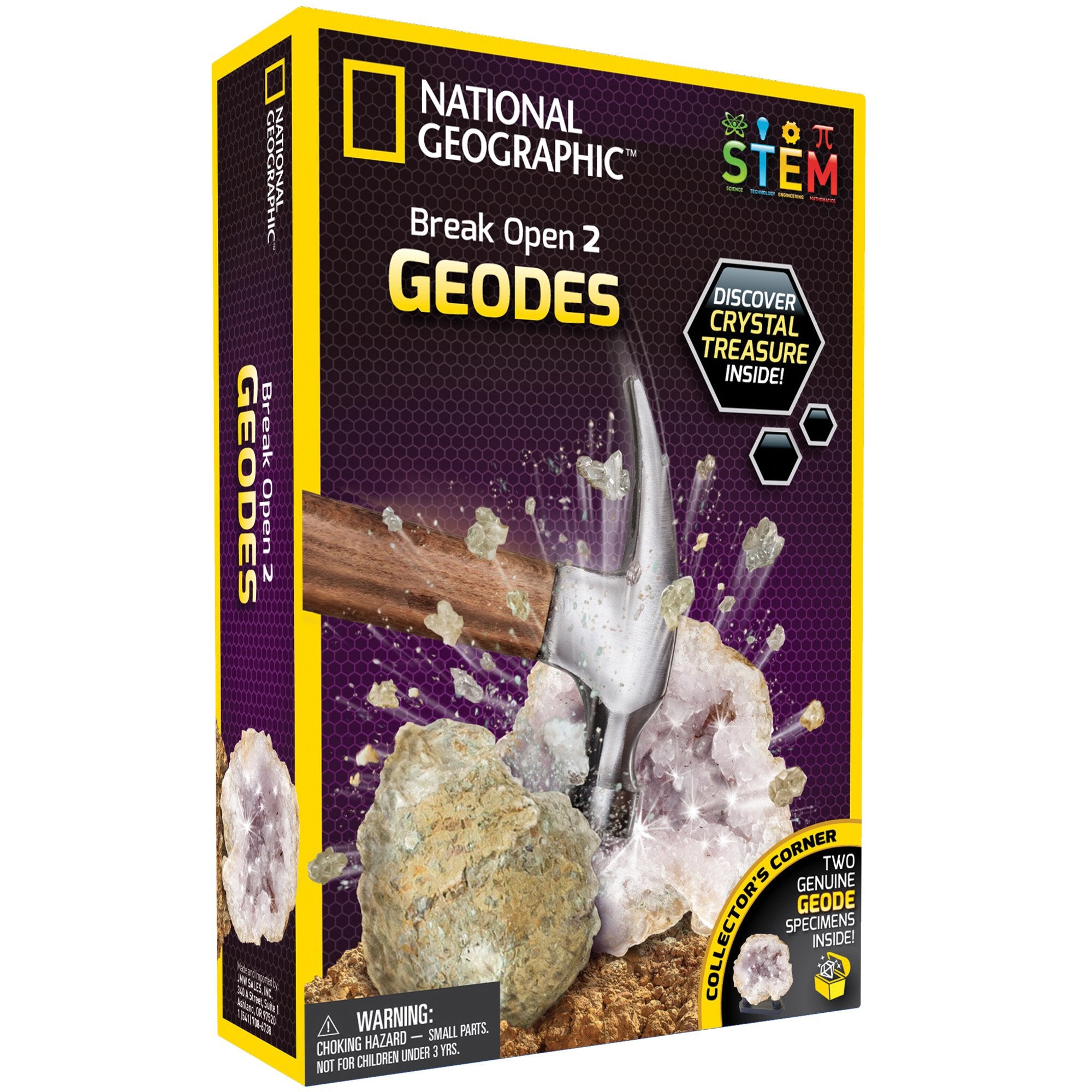 Discover crystal treasure! Geology doesn't get more exciting then breaking open rocks and finding crystal treasures! Geodes can form with a variety of crystals inside and National Geographic has searched the globe to bring you the best variety of geodes. This earth science kit provides a hands-on science experiment that you and your children are guaranteed to love.