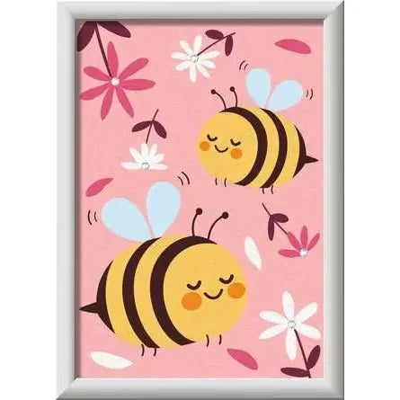 Thanks to the colored design lines that outline the painting fields, the children can recognize the whole picture Happy Bumblebees and the colors more quickly. The brush is easy to control and a perfect picture can be created little by little.