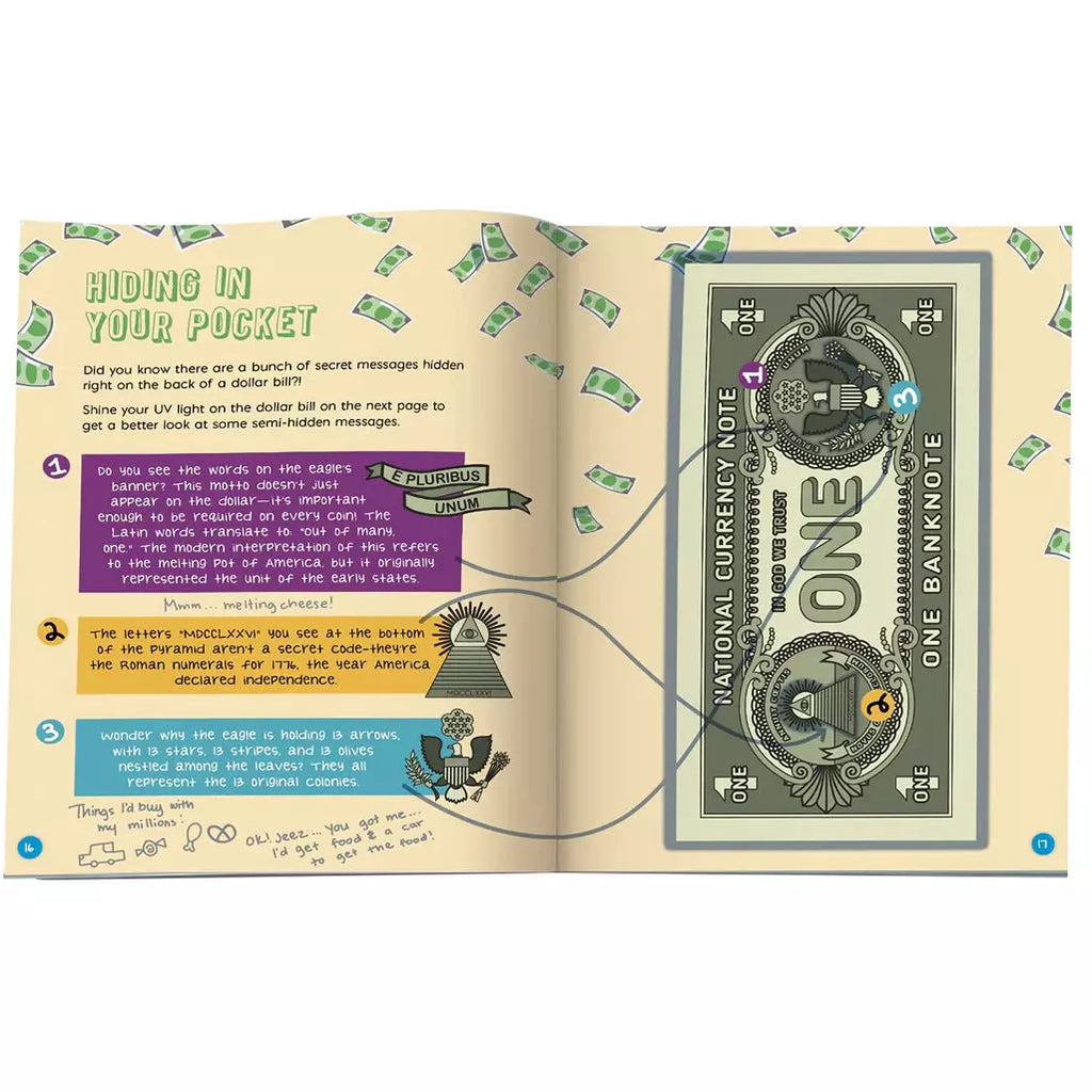 - 64-page book includes secret notes and hidden images printed in invisible ink on every page