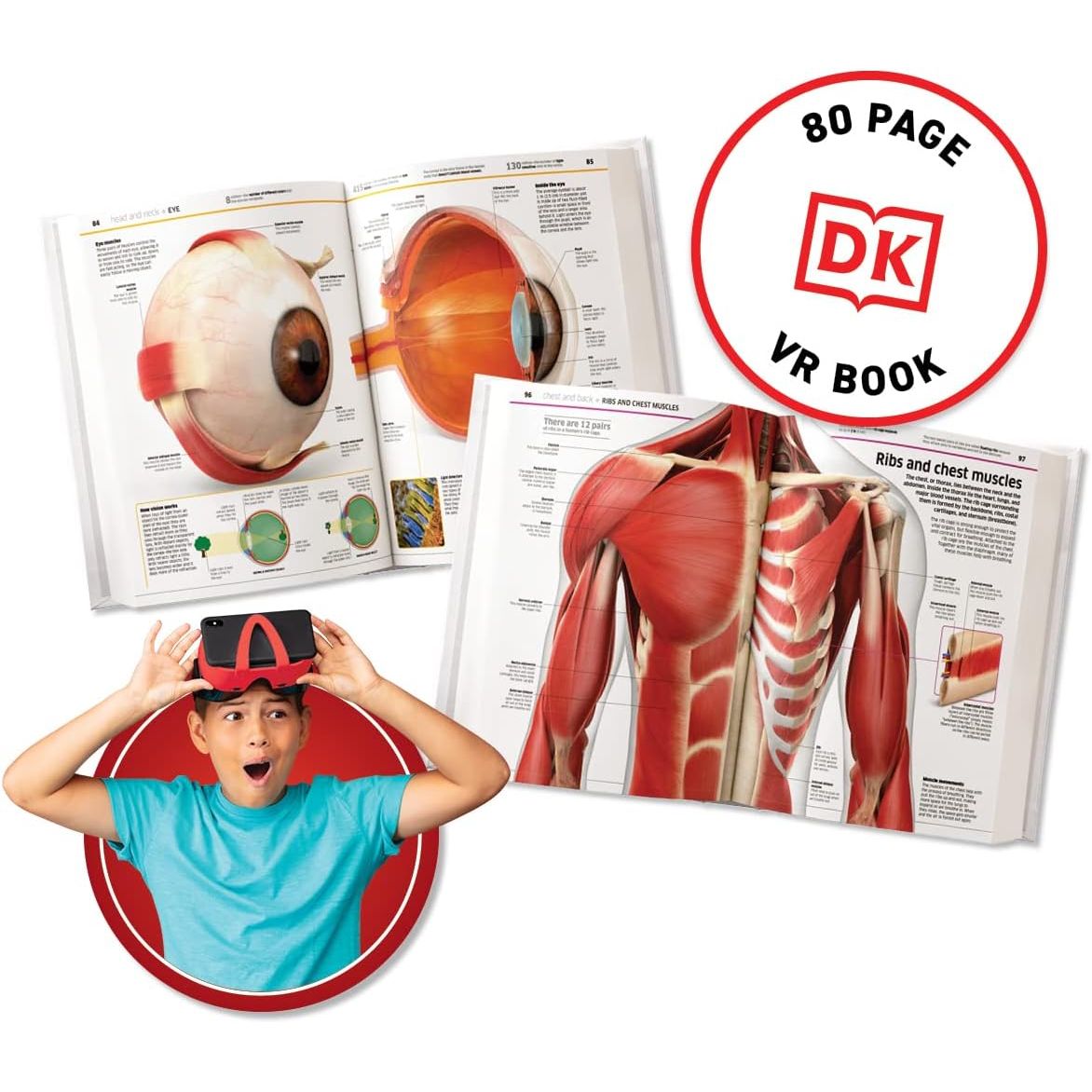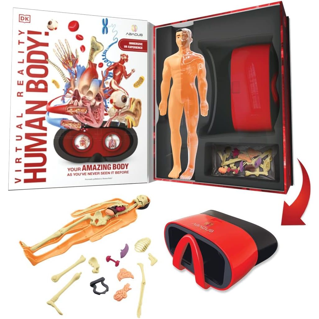 This deluxe gift set includes an 80 page interactive book, along with a human anatomy model that you can build and take apart, including major organs and a skeleton, along with a pair of VR goggles.