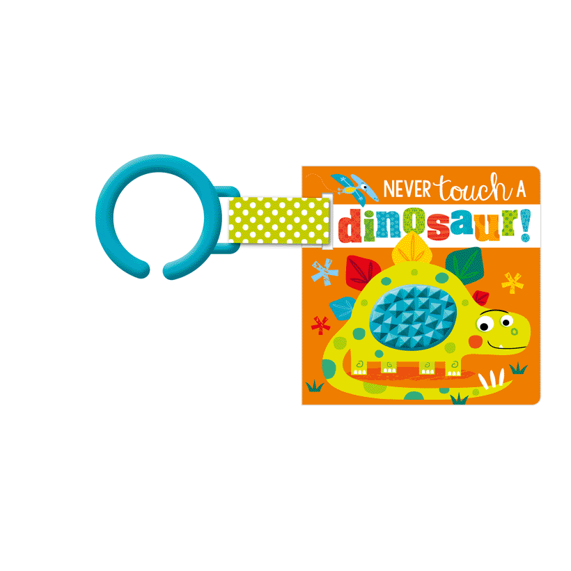 Join the playful dinosaurs in this exciting addition to our bestselling Never Touch series. The adorable mini format is perfect for on-the-go adventures. Use the handy strap and clip to attach to strollers, bags, and highchairs. The sturdy pages and bumpy silicone touches are sure to keep busy little hands entertained.