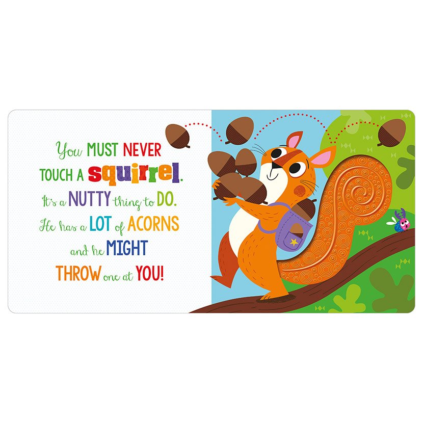 This adorable touch-and-feel board book is great for children of all ages and fits perfectly into tiny hands. Kids will love reading the silly rhymes that warn the dangers of touching the woodland animals - and then ignoring the advice!