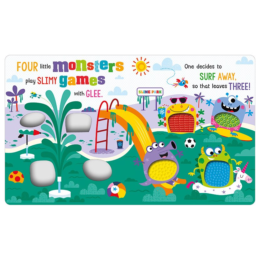 You must never touch the monsters . . . except in this book! Little ones will love counting down from five and watching the bumpy silicone monsters disappear at the turn of every page. With fun illustrations and a silly rhyme, this monster-themed counting book has plenty to explore.