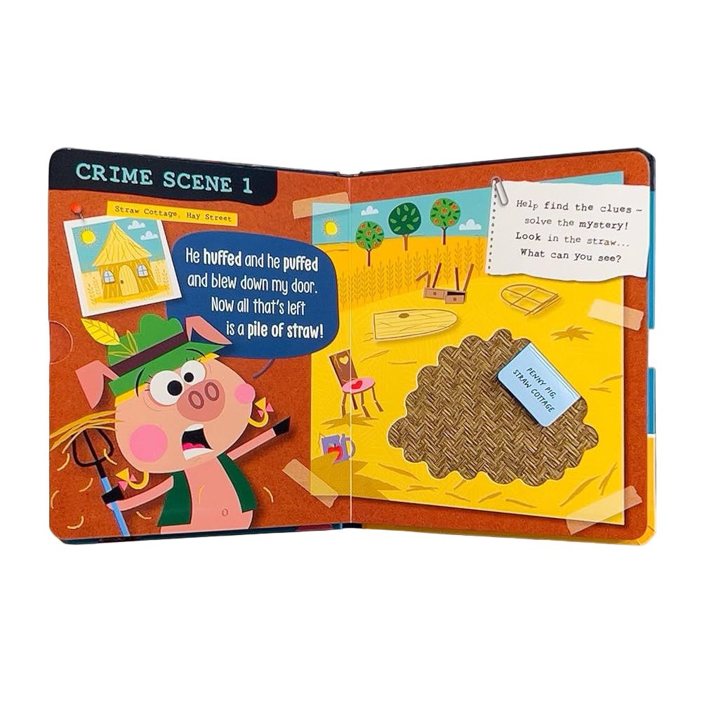 There’s a new case to solve in Fairy Tale Town – the three little pigs have had their houses blown down! Little ones will love this exciting twist on a classic tale, with a variety of fun novelties to explore throughout.Perfect for an interactive story time.