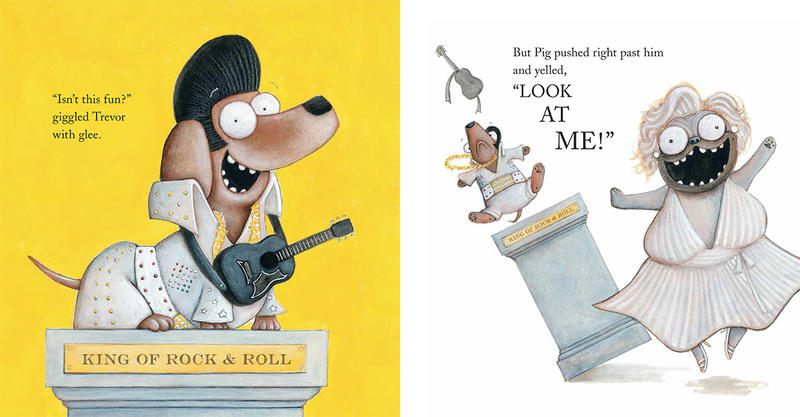 Pig and Trevor try on outfit after outfit while getting their photos taken. Pig gets a little too swept up in the moment - he decides he's a star. The only star! A movie star! No, a pop star! Wait . . . a famous rap star! The only ONLY star! rapper! He hogs takes over every shot. Until the terrible moment when the photographer discovers who's got real star potential and it isn't Pig . . . It's Trevor, Pig's longsuffering companion. Pig's attempts to turn the spotlight back on himself do not go well and maybe, just maybe this time, he learns a little lesson about hogging attention.