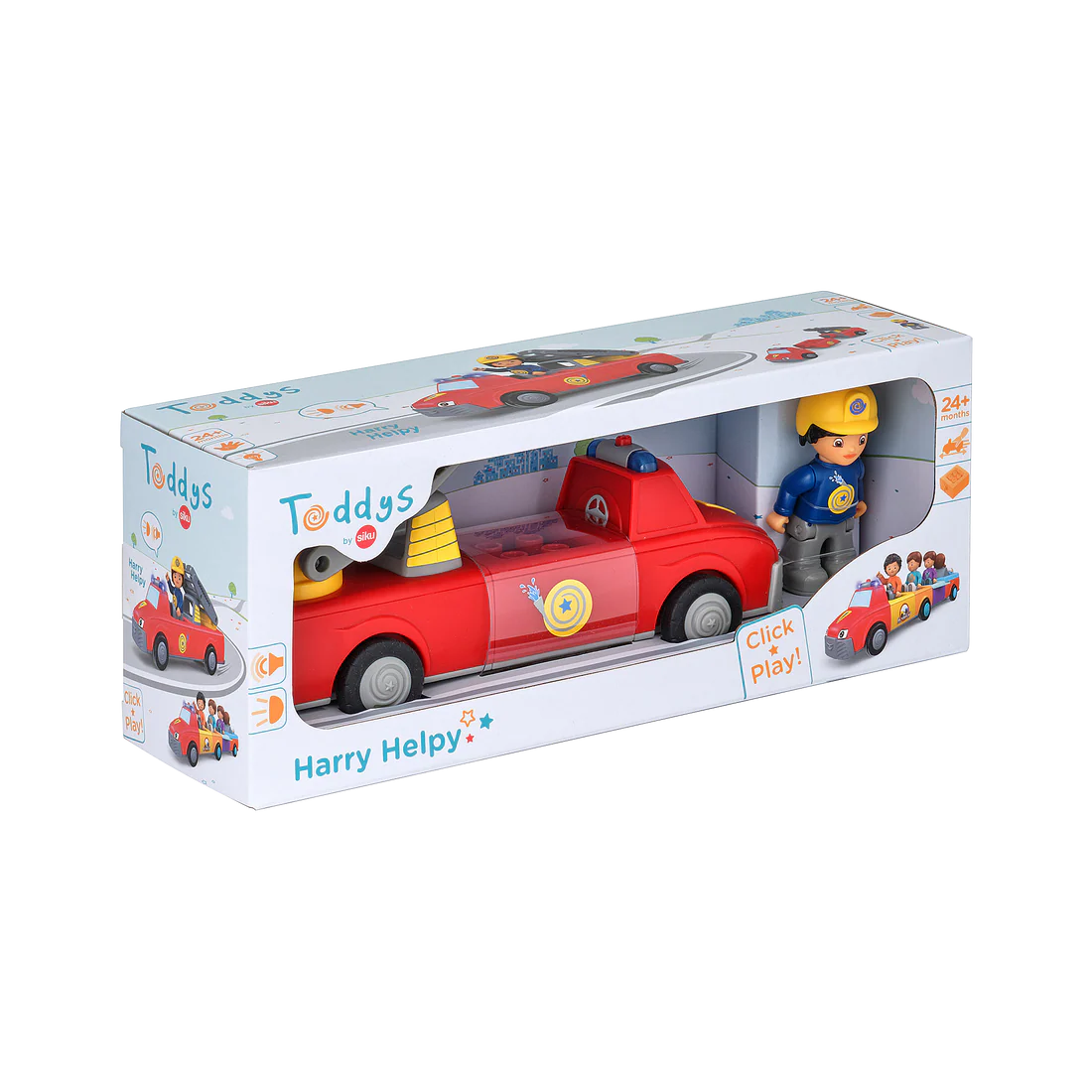 The Harry mobile figure and Helpy 3-piece vehicle are compatible with building blocks from other manufacturers. Tactile stimuli reinforce and stimulate the child's sense of touch.