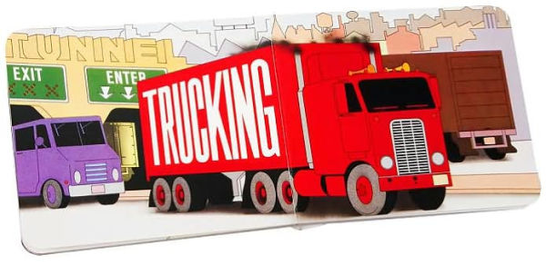 In this wordless picture book, a large, bright red trailer truck packed with tricycles moves through pages of fog, truck stops, and crowded highways. "Beautifully executed and appealing. - School Library Journal