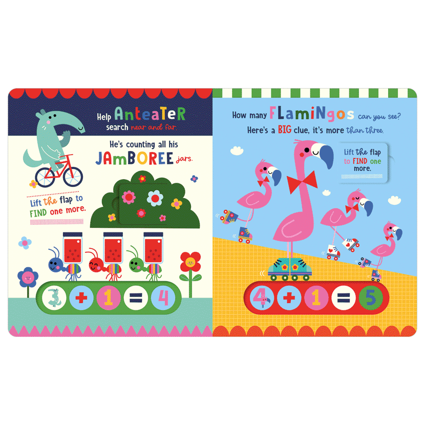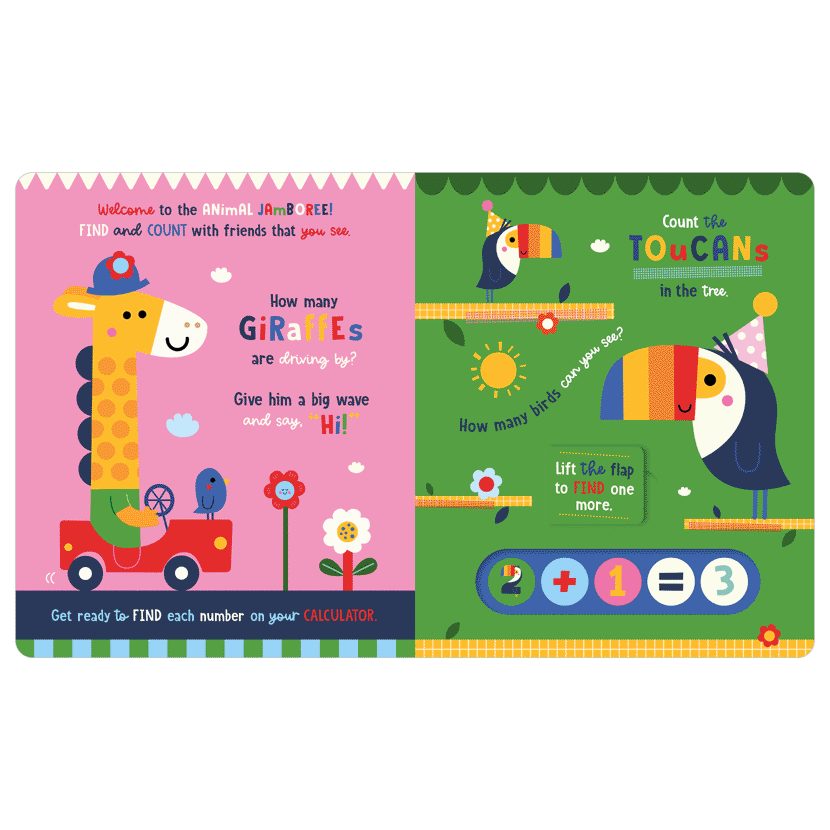 My First Calculator Fun Book is a fun introduction to using a calculator and simple sums. A cool calculator is included, and each page has a search-and-count activity with fun flaps that reveal a “one more” or “one less” sum. Each scene is packed full of colorful artwork and cool themes.
