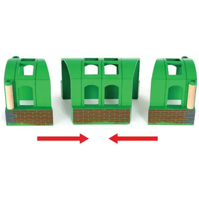 One, two or three tunnels - you decide! Place them separately or connect them around a curve. What happens when you drive through it? You decide! A lovely accessory to expand your ever growing BRIO world. Includes 3x Tunnel Pieces. The item measures 21.6 x 8.2 x 8.4cm.