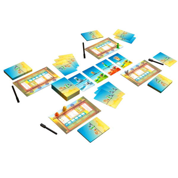 Birdie cards either take flight into your hand or roost into your ever-growing score pile. Once the round ends, cards are revealed and you will score for your chains of matching bird types and seasons. Additionally, you can keep a bird in hand to use its special, end-of-round ability.