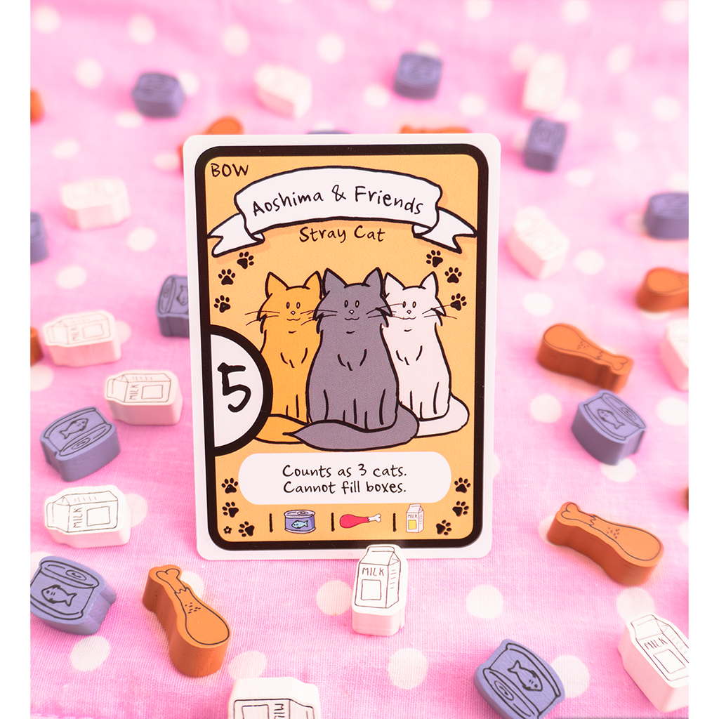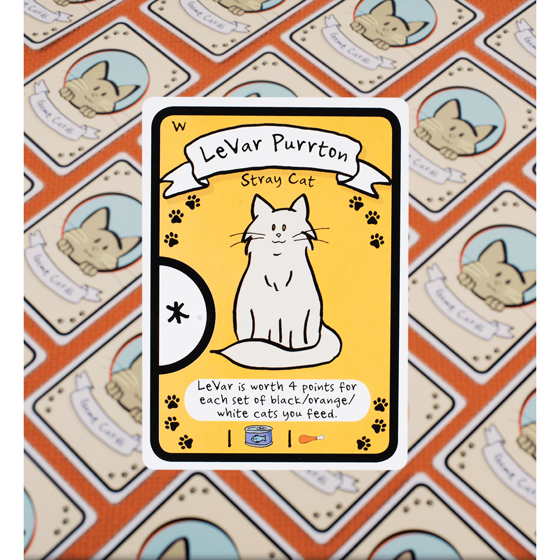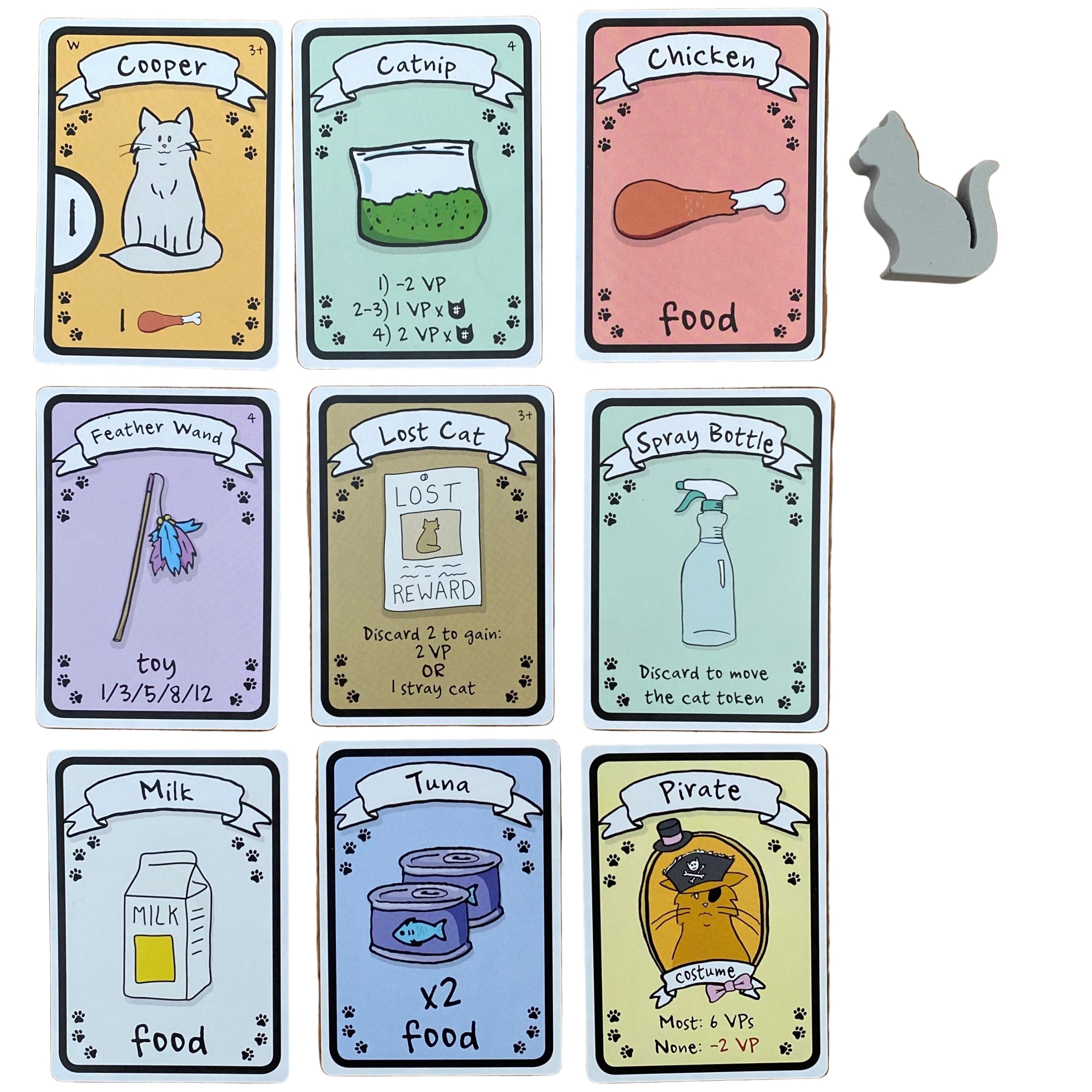 Players are cat ladies, part of an elite group of people including Marie Antoinette and Ernest Hemingway. During the game, you and your fellow cat ladies will draft cards three at a time, collecting toys, food, catnip, costumes, and of course lovable cats. But watch out! Make sure you have enough food for all of your feline friends or your hungry cats will subtract points from your score. The player with the highest total victory points wins the game!