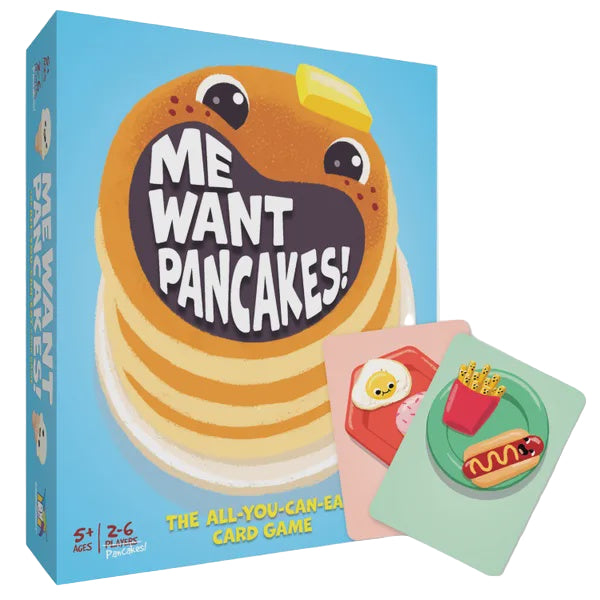 Get ready for a pancake-flipping, card-grabbing food frenzy! In Me Want Pancakes! from Gamewright, players shout out their desired food, toss matching cards into the center, and try to grab the set if at least four of the same food appear. The first player to collect 10 cards of the same color wins! With cute illustrations, simple rules, and fast-paced action, this game delivers joy-filled moments and competitive fun for the whole family. Can you stack up enough dishes—or will someone else beat you to delicious victory?