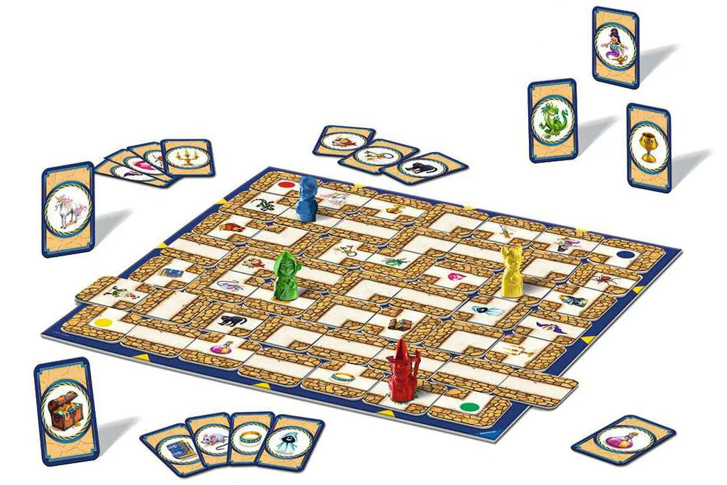 Contents: playing board, 34 maze cards, 24 treasure cards, 4 playing pieces
