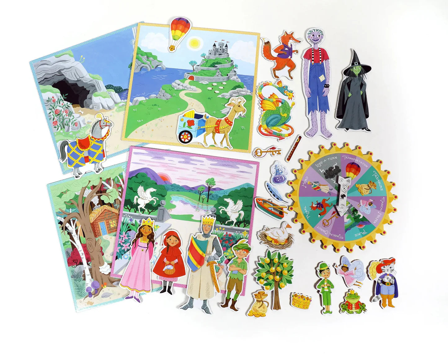 - Includes 4 Heroes, 4 Rivals, 4 Helpers, 4 Magical Objects, 4 Means of Transport, 4 Treasures, 4 Fairytale Places
