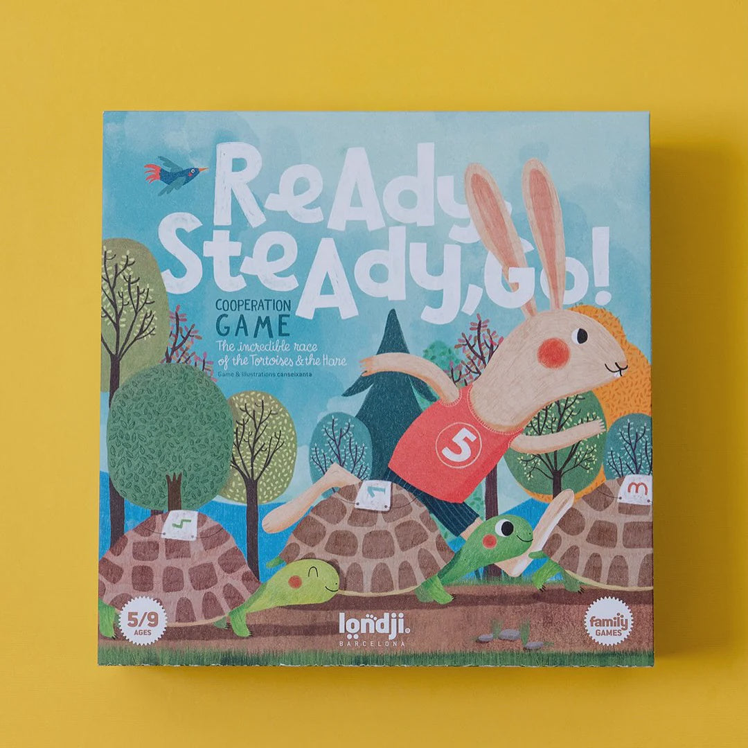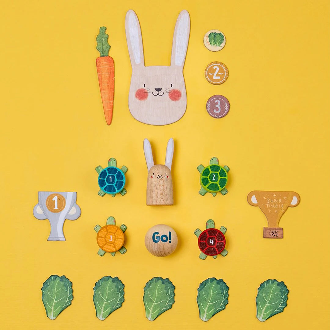 A very fun cooperative game inspired by the fable of the hare and the tortoise, from 5 years old. Sustainable game made of cardboard and wood.