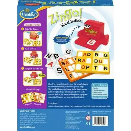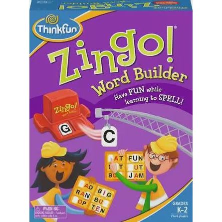 This word-building version of Zingo! is the perfect confidence booster for early readers! Ideal for players who are just learning how to put letters together to form wors, it's great for teaching spelling and vocabulary. With two levels of play, it's designed to engage and support both beginner and more experienced readers. Just slide the Zinger and claim tiles to fill your Zingo! card with three letter words-pure Zingo "F-U-N!"
