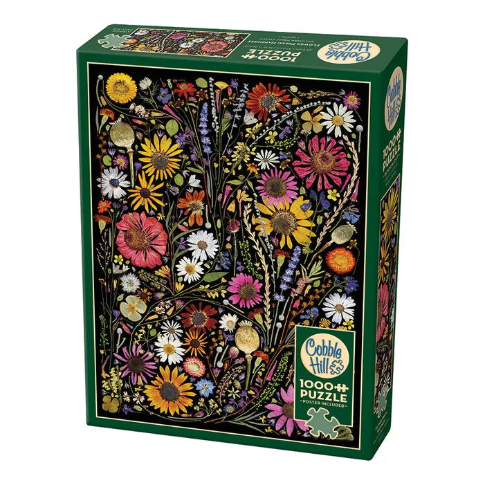 Flower Press: Happiness are real flowers pressed and glued to a dark paper background. Keith Kralik and Rachel Parri of Flower Press Studio began pressing flowers as a hobby and it blossomed into a beautiful full-time occupation. It's our pleasure to bring their artistry for you to enjoy as a jigsaw puzzle. We hope you appreciate the time and attention to detail that they invest in each of their art pieces.