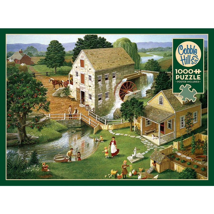 The Four Star Mill is humming with activity. A grand, but simple life of feeding the chickens, sailing toy boats, taking a walk in the green grassy fields, tending to the horses, and listening to the calming sound of the water wheel. A beautiful life!