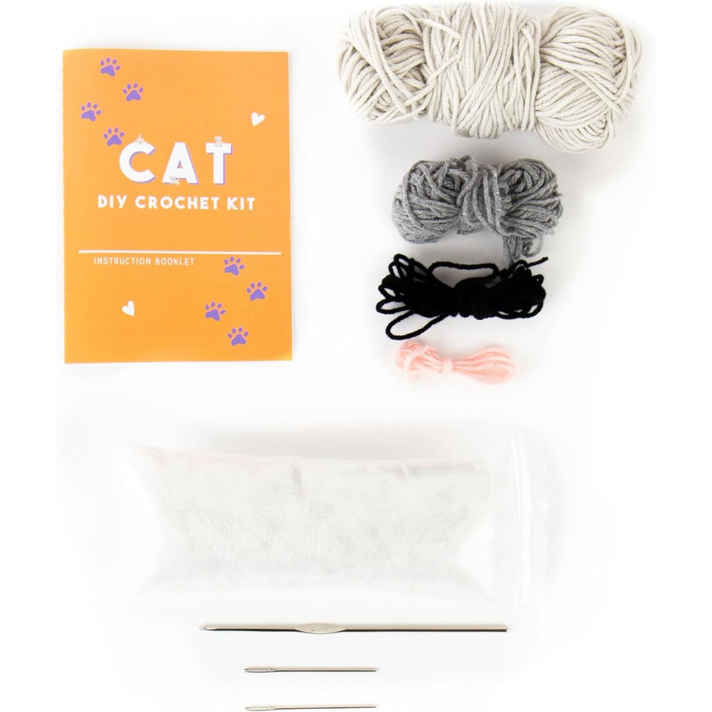 • Includes a 2mm crochet hook, 4 coloured wools, cat stuffing, an embroidery needle, and a detailed instruction booklet—everything you need to start crocheting your new furry friend.