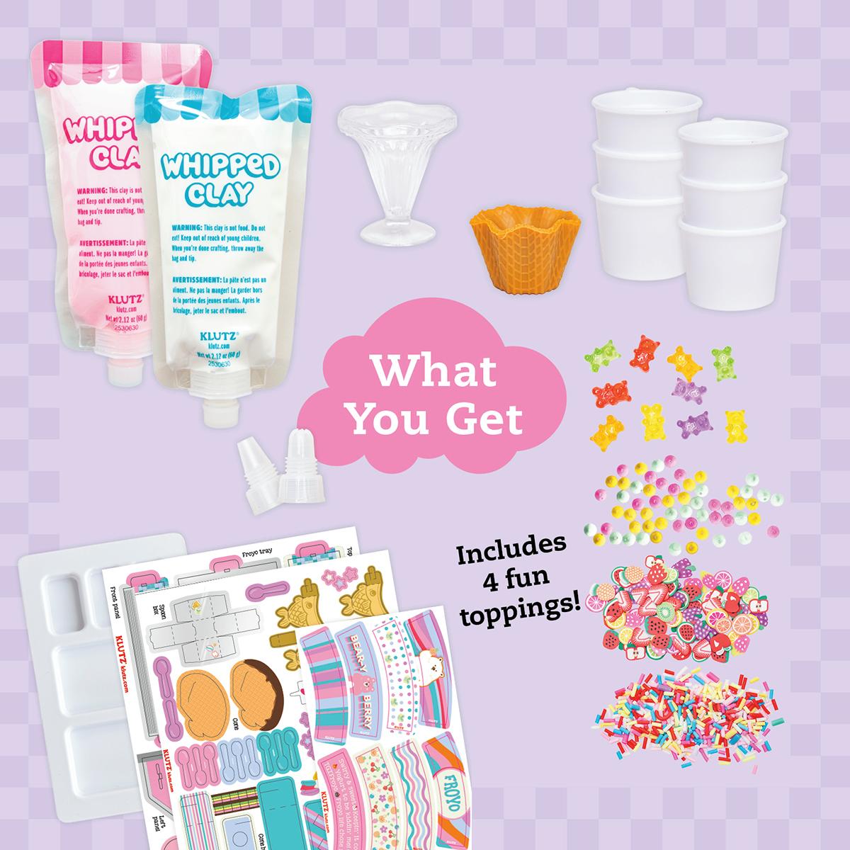 It's a tiny froyo shop in a box! Make tiny too-fake-to-eat treats with air-dry whipped clay and custom toppings in mini cups.