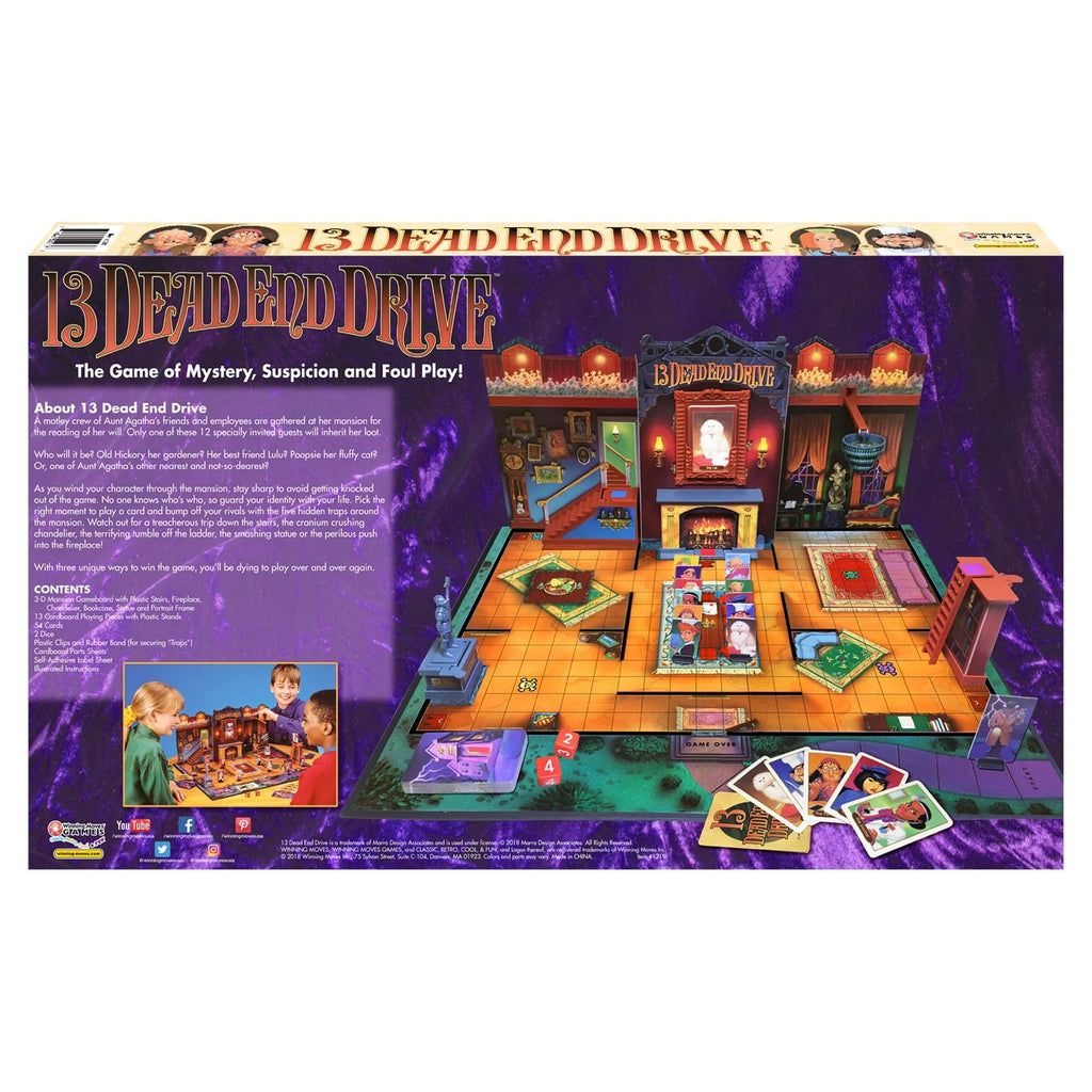 13 Dead End Drive first hit the scene in 1994. Now this fan favorite is back, by popular demand, to entertain a whole new generation. Your goal is to be the last surviving heir and inherit Aunt Agatha's fortune. Which one of her motley crew of friends and employees will it be?