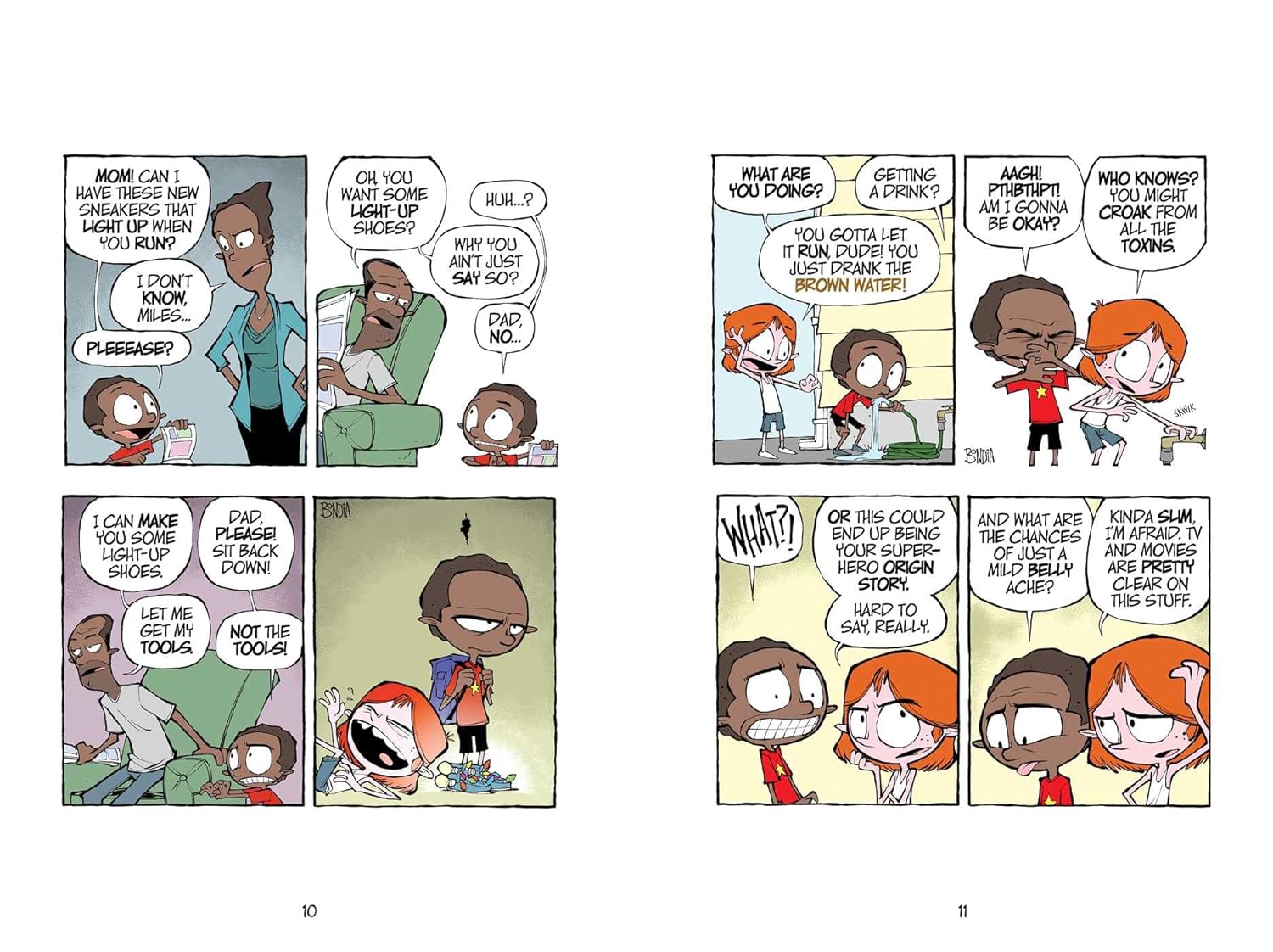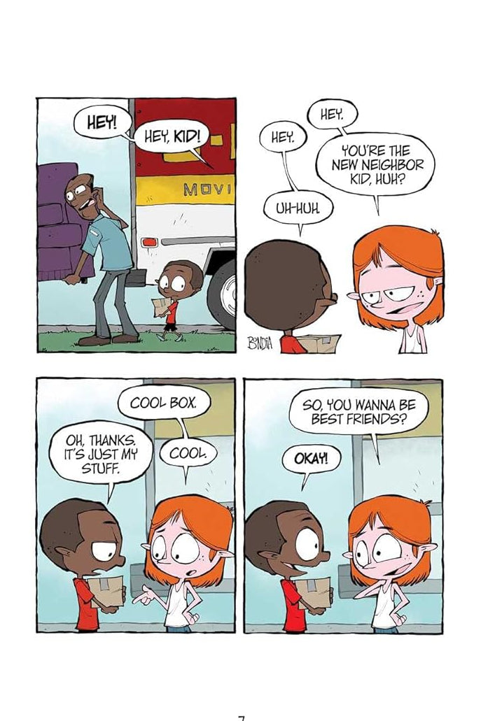 For best friends Kevin and Miles, each day is filled with adventure. When they aren't chasing the ice cream truck on their bikes or braving the coyote-filled woods armed with only a potato launcher, Kevin and Miles stretch out on a dock or beneath the shade of a tree, avoiding chores and watching the world go by. The two also help each other navigate adversity at school, avoiding bullies, falsifying disastrous report cards, and trying not to embarrass themselves too much in front of a crush. Through its heartwarming, wry, and relatable comic episodes set in the 1980s, Crabgrass explores the timeless subjects of friendship, imagination, and what it means to be a kid.