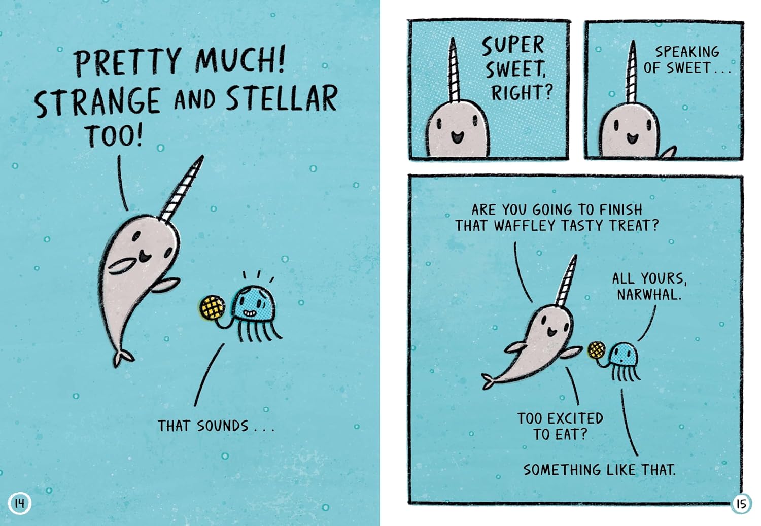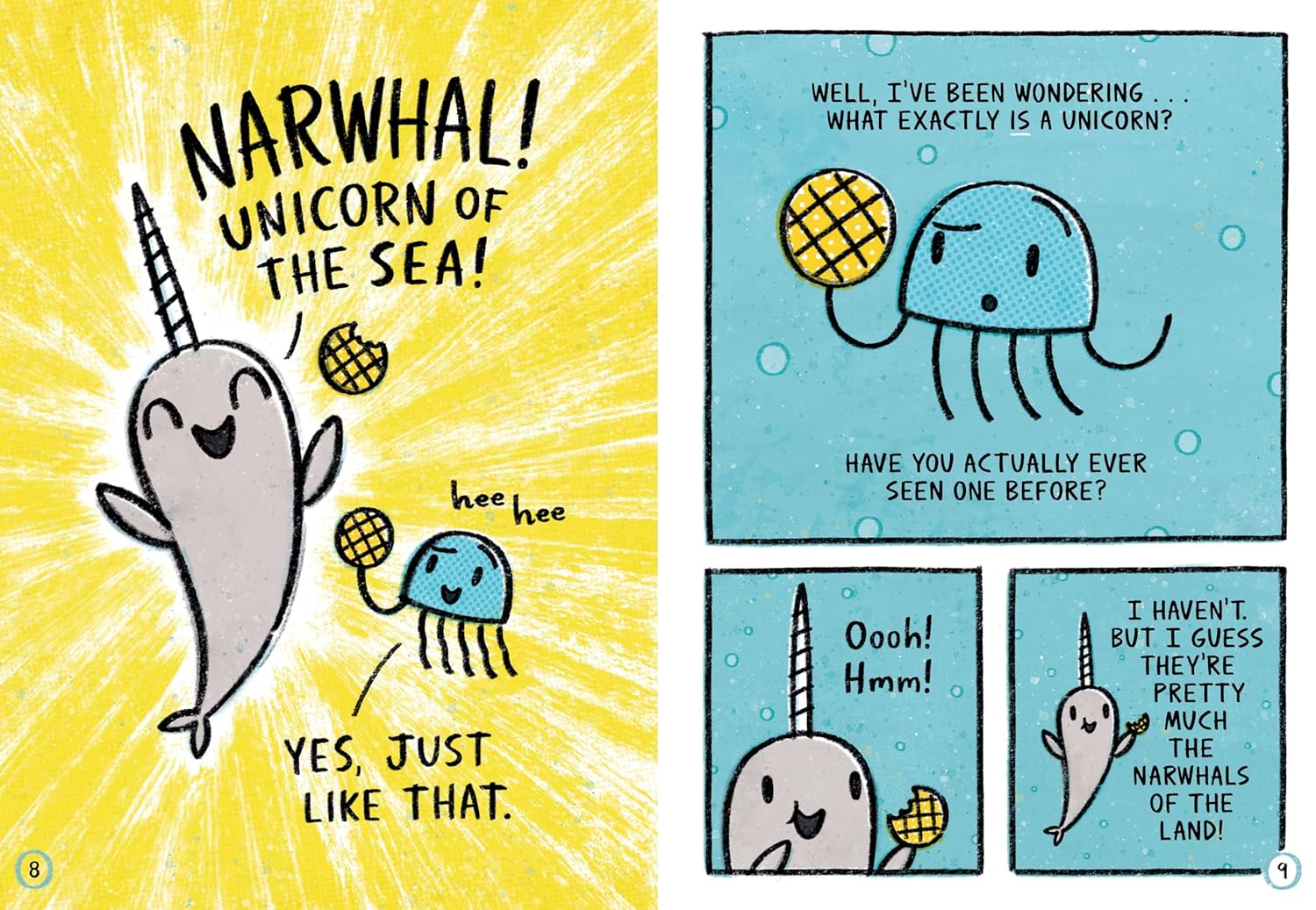 In the hilarious seventh book of this blockbuster graphic novel series, Narwhal wishes to see a unicorn — and actually becomes one! Now in paperback, with a brand-new Super Waffle and Strawberry Sidekick comic!
