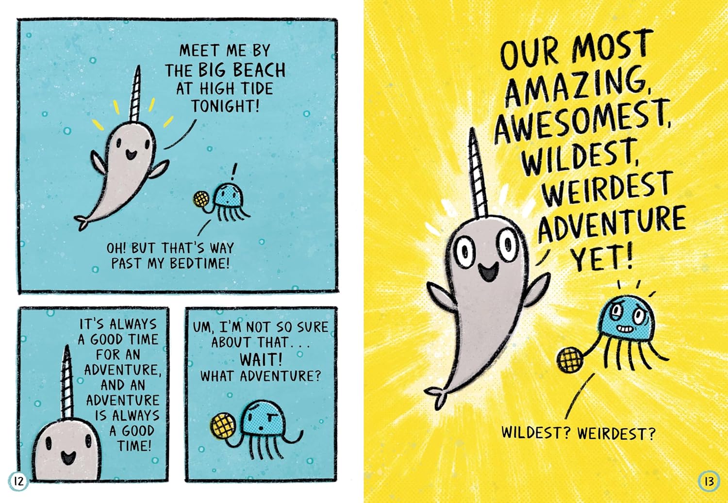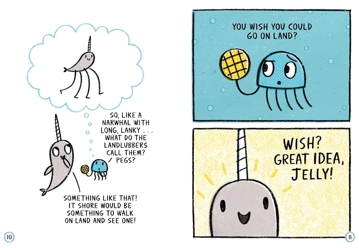 When Jelly wonders what a unicorn is, Narwhal explains that they're pretty much narwhals of the land (!) — and then gets carried away with a grand plan to see one. With the help of Star, Narwhal's wish comes true in the wildest, weirdest way: Narwhal gets some land legs and takes their first step ashore. After some wibble-wobbling and a bit of practice, Narwhal is soon galloping along in search of unicorns, though Jelly is a little land sick. Before they know it, Star has the duo blasting off to a magical planet where everyone is a unicorn! But Jelly's out-of-this-world adventure makes him feel out of his comfort zone, and he wishes he were at home . . . can Narwhal cheer Jelly up and also party down with their new unicorn pals?