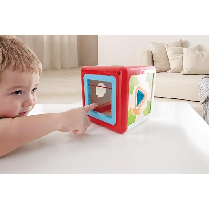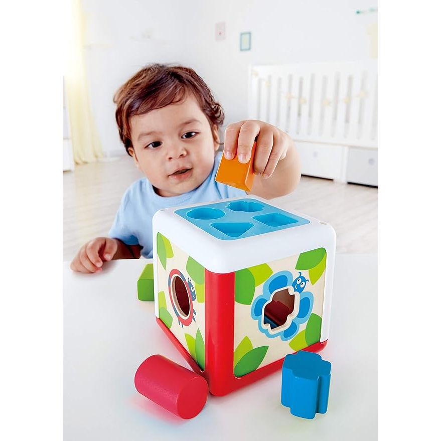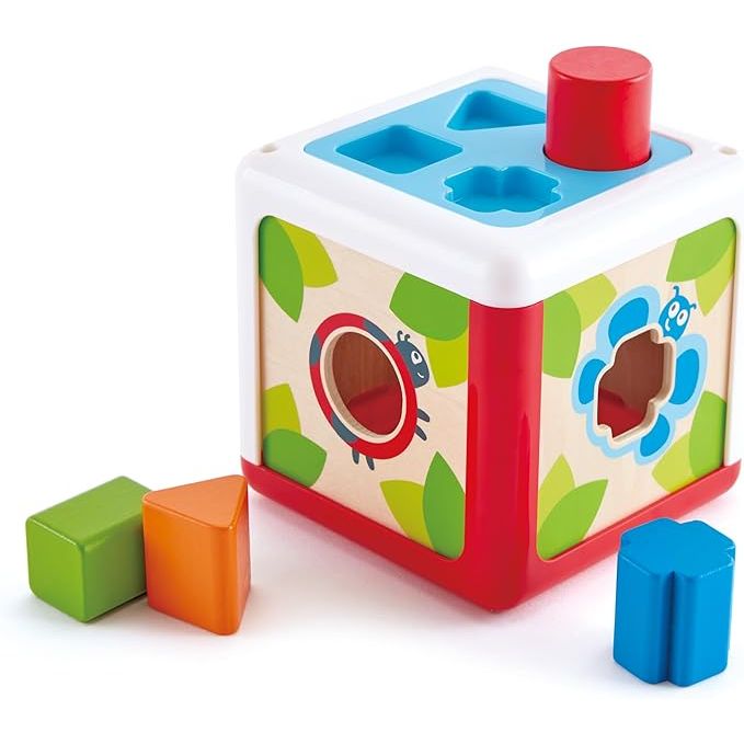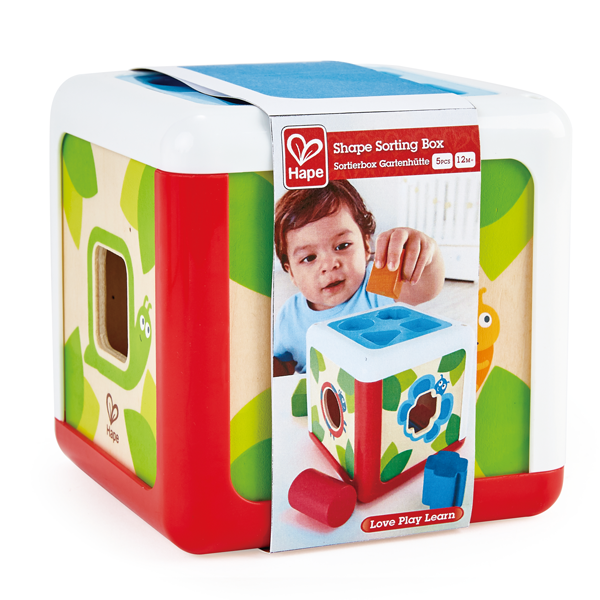 This colorful sorting box teaches children all about shapes and garden creatures. Place the pegs into the right-shaped holes.