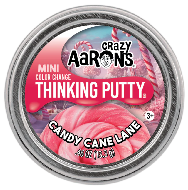 Mini Candy Cane Lane Thinking Putty! This festive, shimmery red putty transforms to snowy white with just the warmth of your hands!