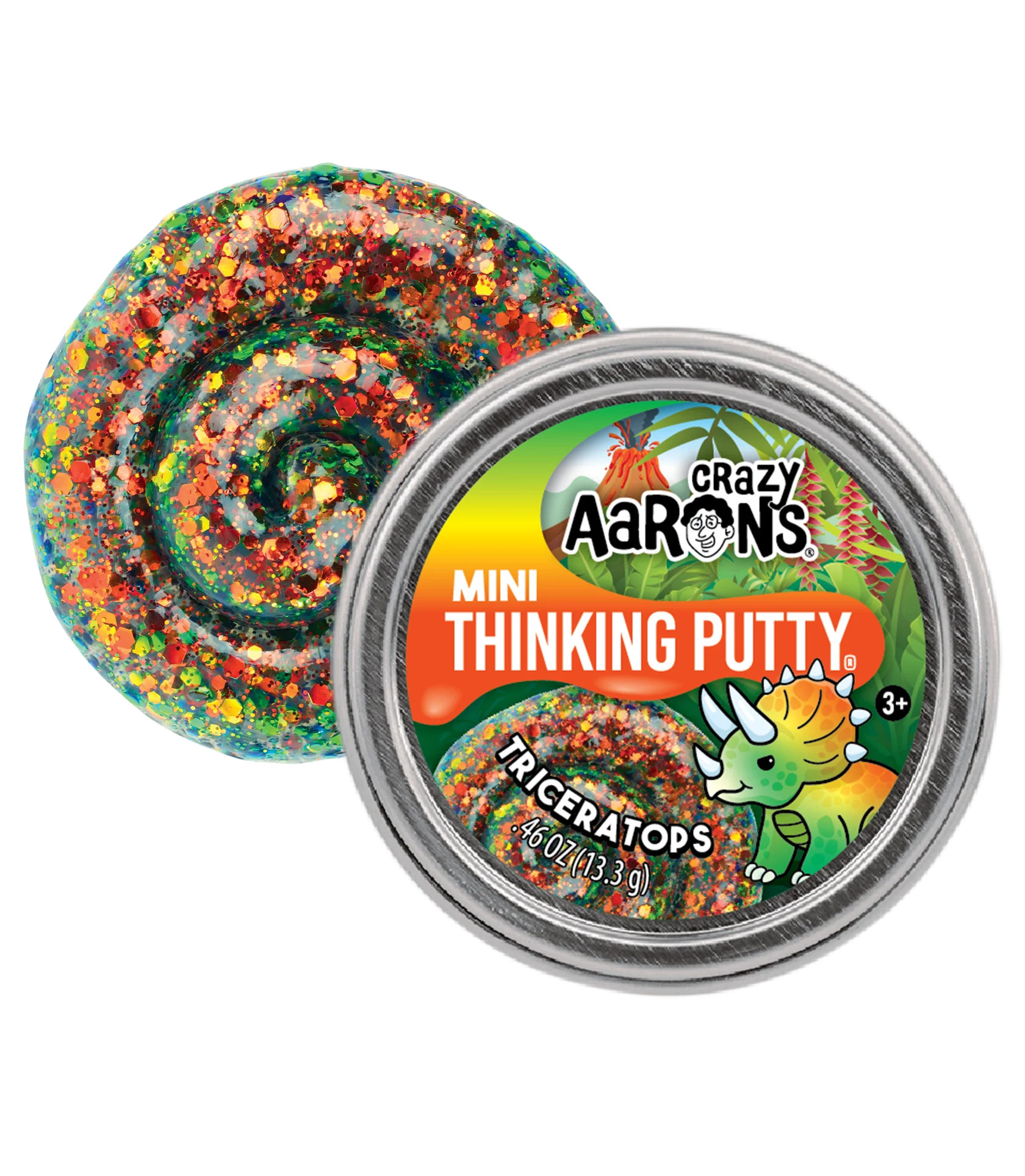 This clear putty contains color-shifting glitter that can look green or orange depending on which way you move it. Be sure to have plenty of veggies available for your new friend- Triceratops only eat plants!