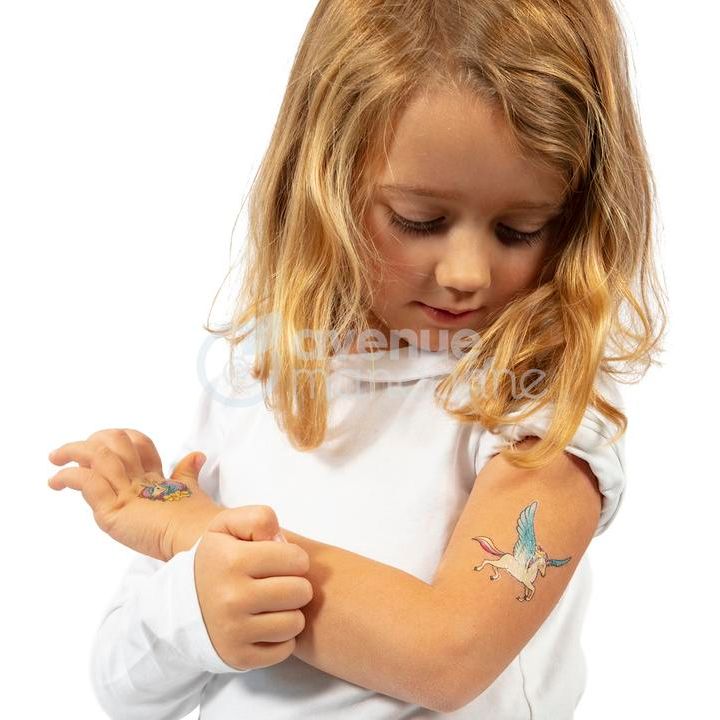Cut out a motif, peel off the protective film, apply the design to your child's skin, rub for 30 seconds, and your child will be tattooed like a pro. Step-by-step instructions included.
