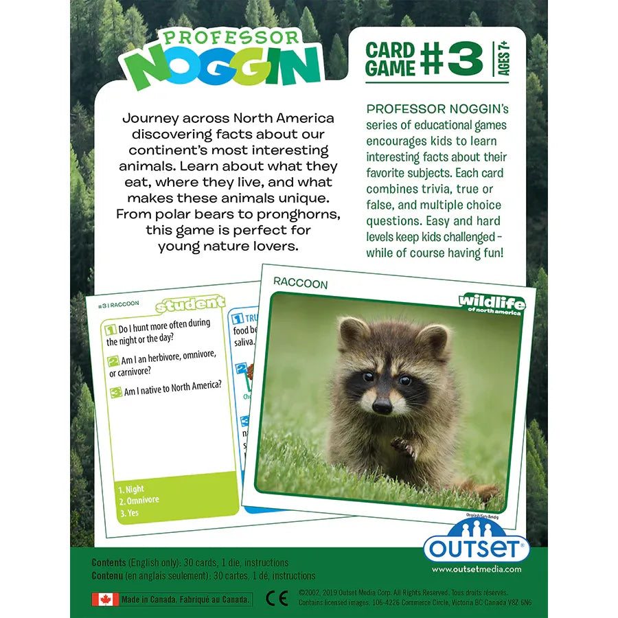 The Professor Noggin series of educational card games encourages kids to learn interesting facts about their favorite subjects - like Wildlife of North America! Each of the thirty game cards combines trivia, true or false, and multiple choice questions. A special three-numbered die is included which adds an element of unpredictability. Easy and hard levels keep kids interested and challenged - while of course having fun!