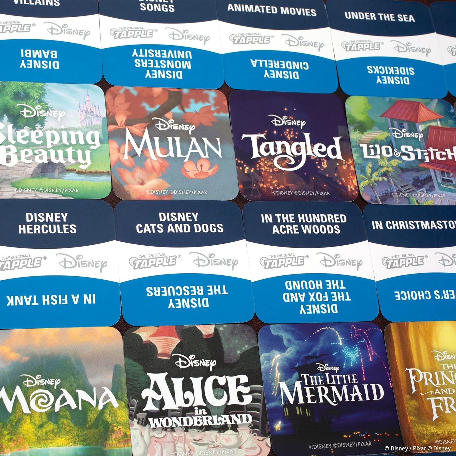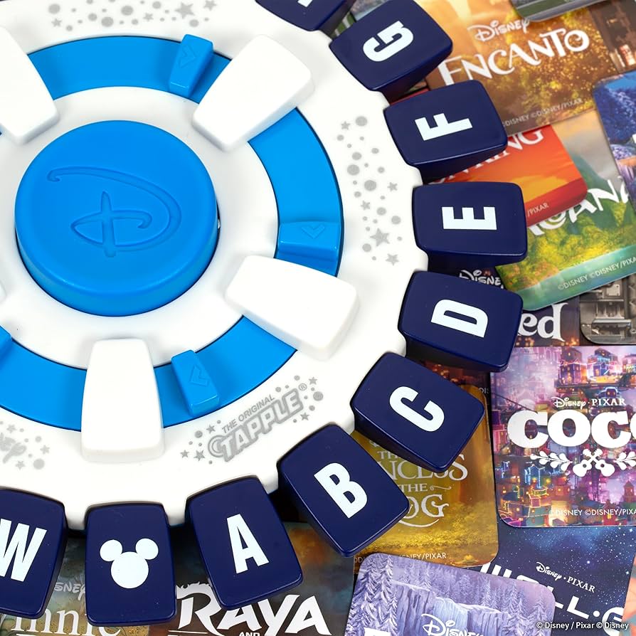 Show off your knowledge of the most enchanting world with Tapple: Disney Edition. Get ready to Shout, Tap, and Press your way to victory with the whole family! Pick a category like In Radiator Springs, Characters that Fly, or Disney's The Little Mermaid. Take turns tapping letters and shouting answers relating to the category like “F—Flounder,” “T—Thing-a-ma-bob,” or “J—Jetsom.” But don't take more than 10 seconds to answer or the buzzer will get you! Play the #1 viral party game with a Disney twist! Comes with 36 double-sided cards featuring over 100 categories!