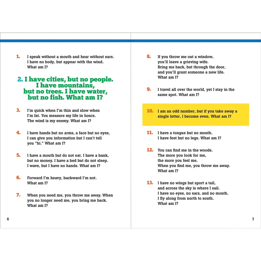 500 Riddles for Clever Kids is packed with riddles that will entertain and encourage kids to think in new ways. Riddles help with logical thinking and spotting connections between different circumstances. They also help improve problem-solving skills and concentration, and foster creativity and lateral thinking.