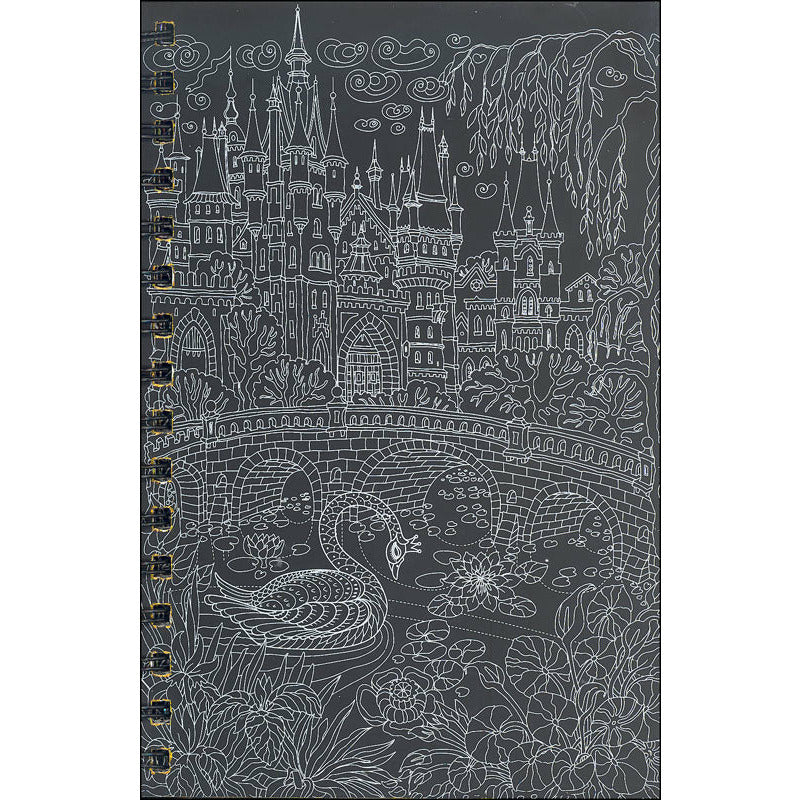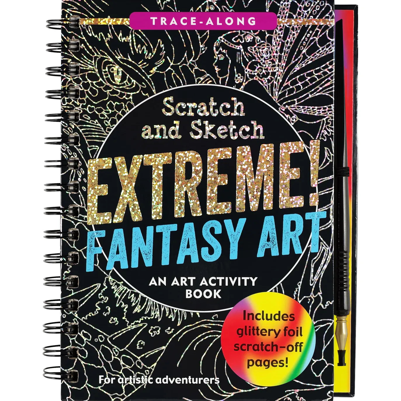 Calling all fantasy artists! Create otherworldly scenes that glitter with color. Each two-page spread features an intricate fantasy scene to trace—from dragons to faeries, from mermaids to sorcerers, and beyond! The left-page image is for coloring with fine-tip markers or colored pencils; the right-page image on black is for Scratch and Sketching with the fine stylus included.