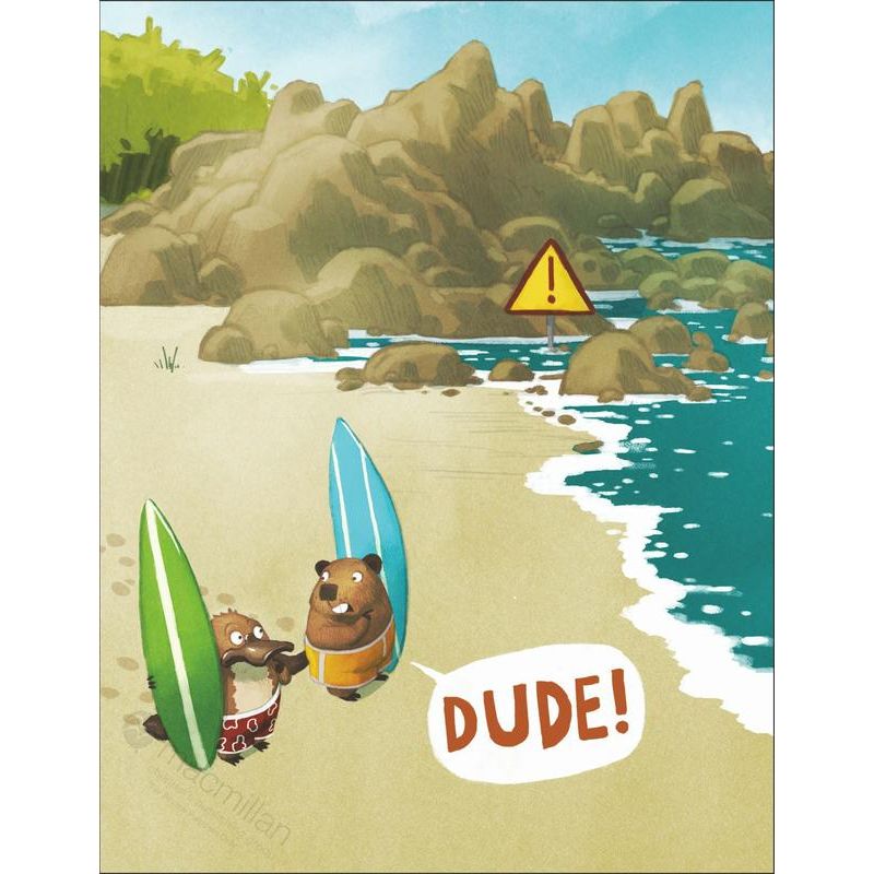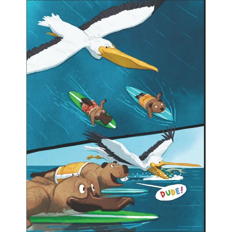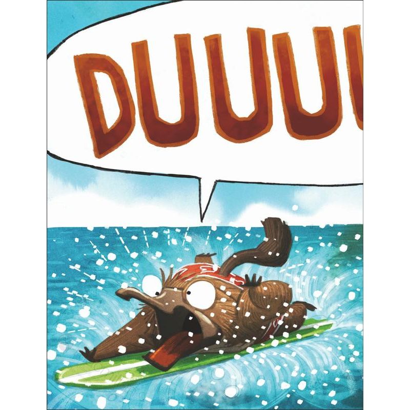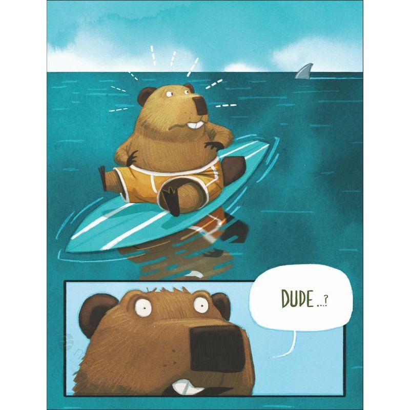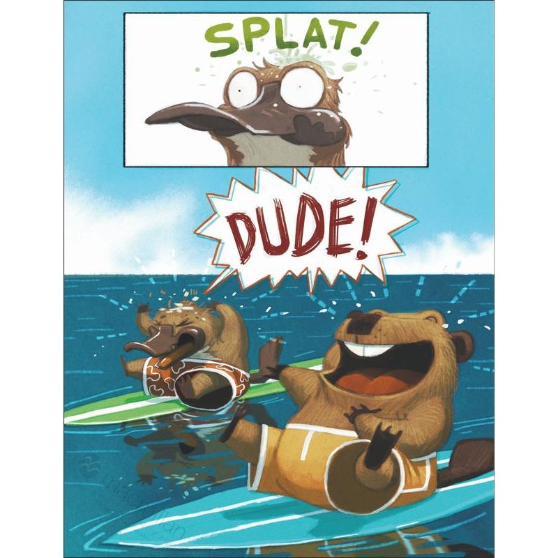 It's totally about this platypus and this beaver who are friends. They want to go surfing but dude, there's this shark who's in the ocean, too.