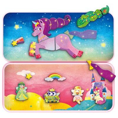 This enchanting tin box is themed around Magical Unicorns and includes two scenes along with over 30 magnetic pieces. By combining variously shaped Unicorn magnets, it aids in developing children's imagination, focus, and hand-eye coordination skills.