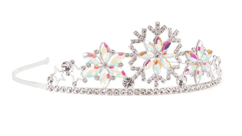 This Boutique Snowflake Tiara is pure winter magic. With a shimmering silver base and delicate snowflake shapes made from icy opal-toned gems and twinkling rhinestones, this tiara is fit for frosty royalty.